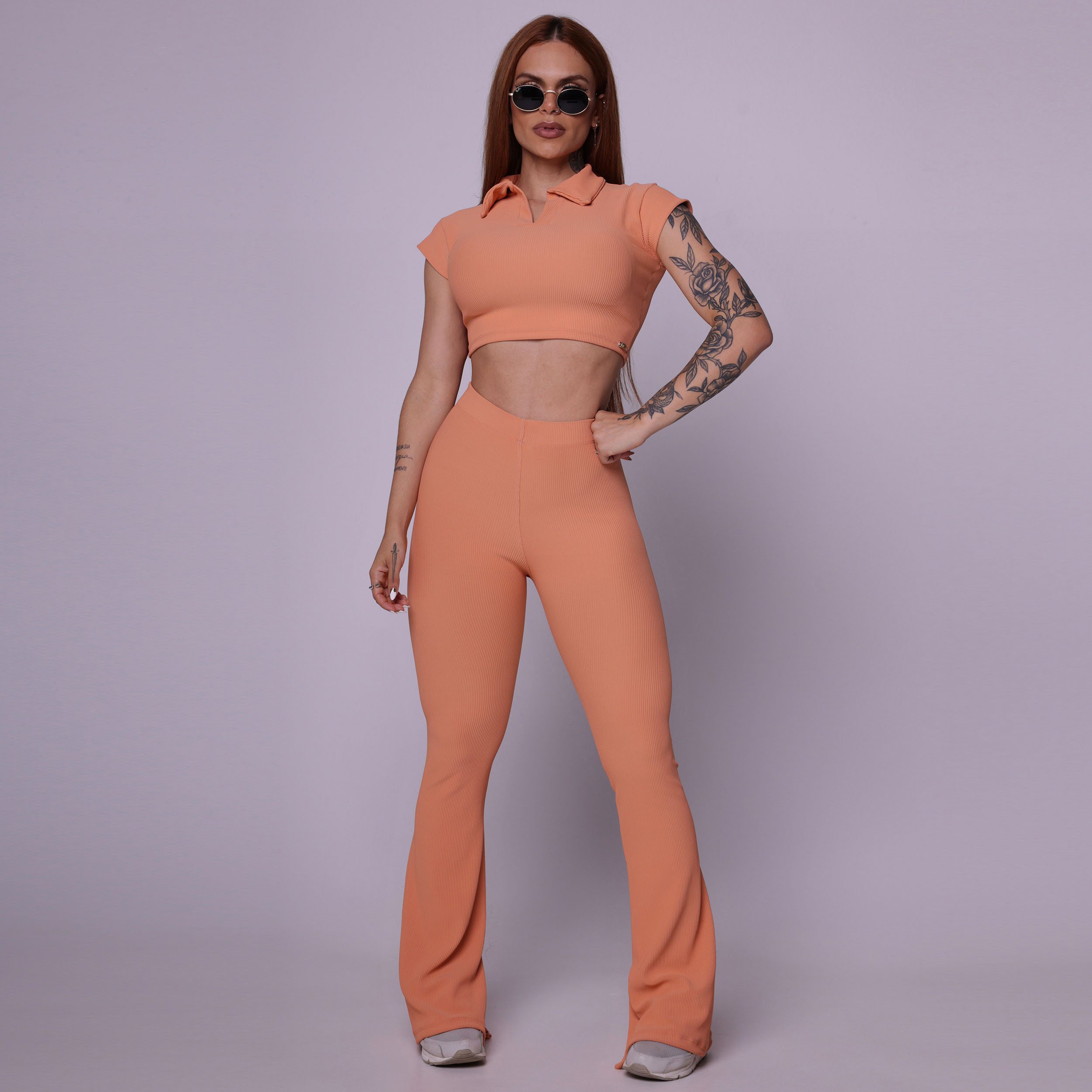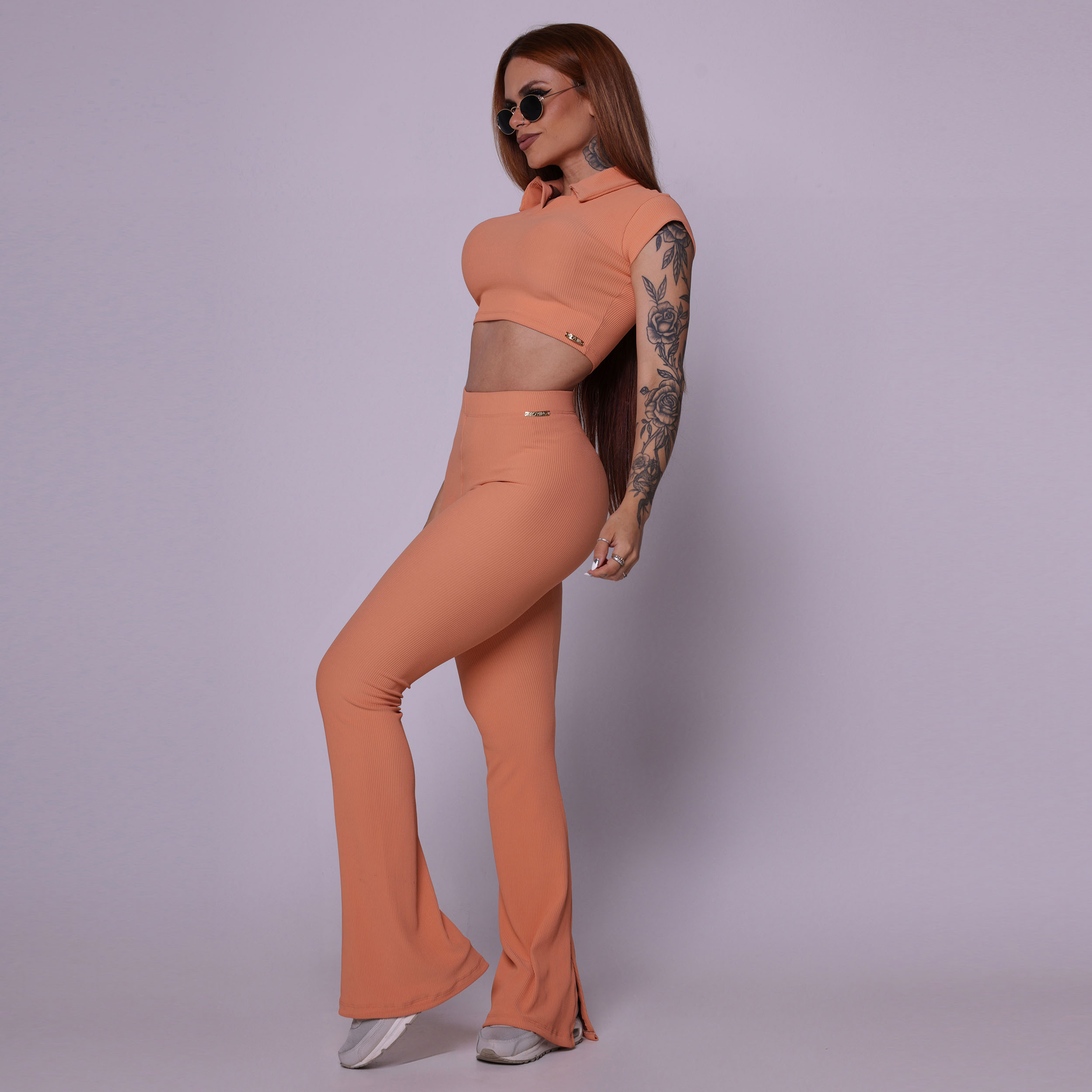 CALÇA FLARE JACQUARD CANELADO PAPAIA