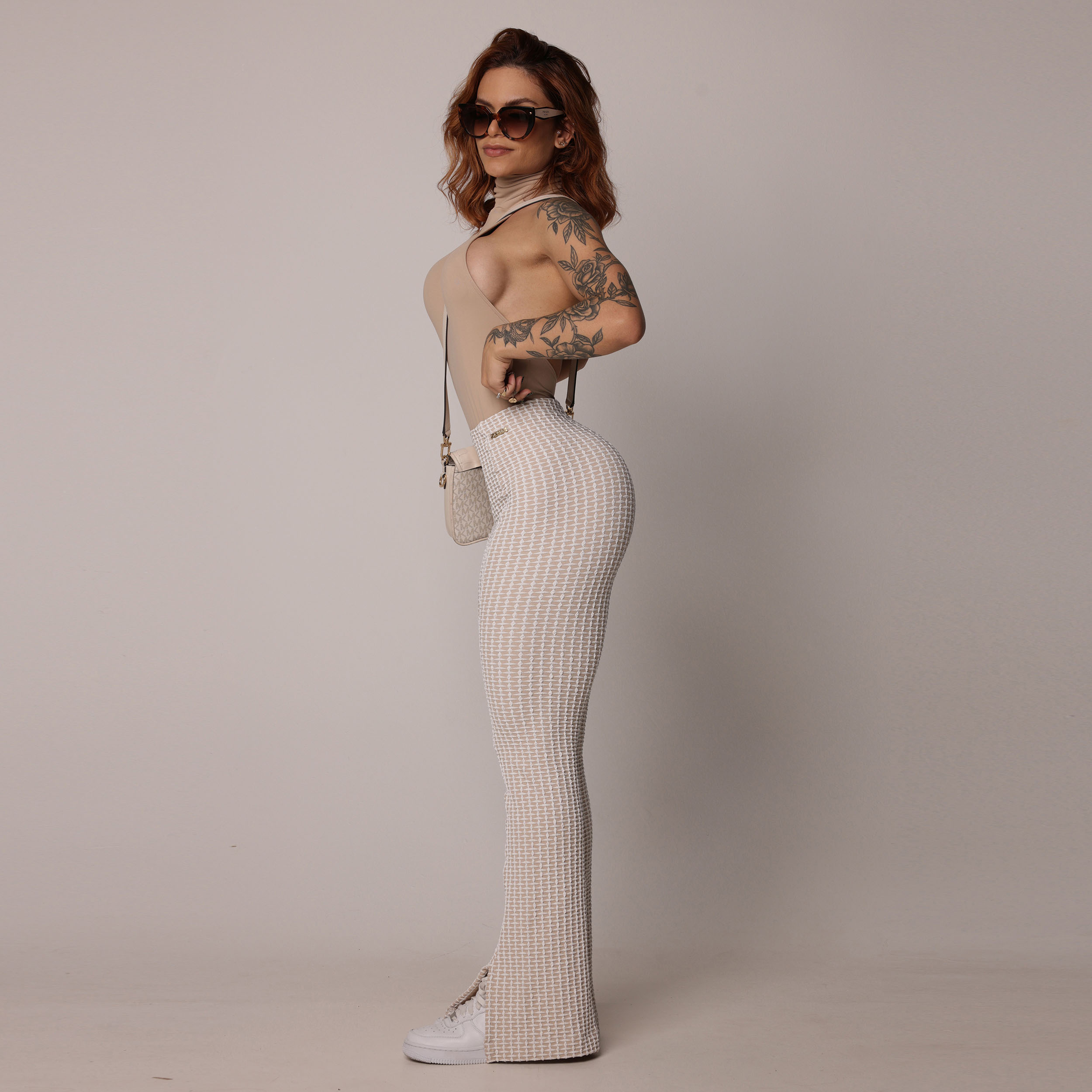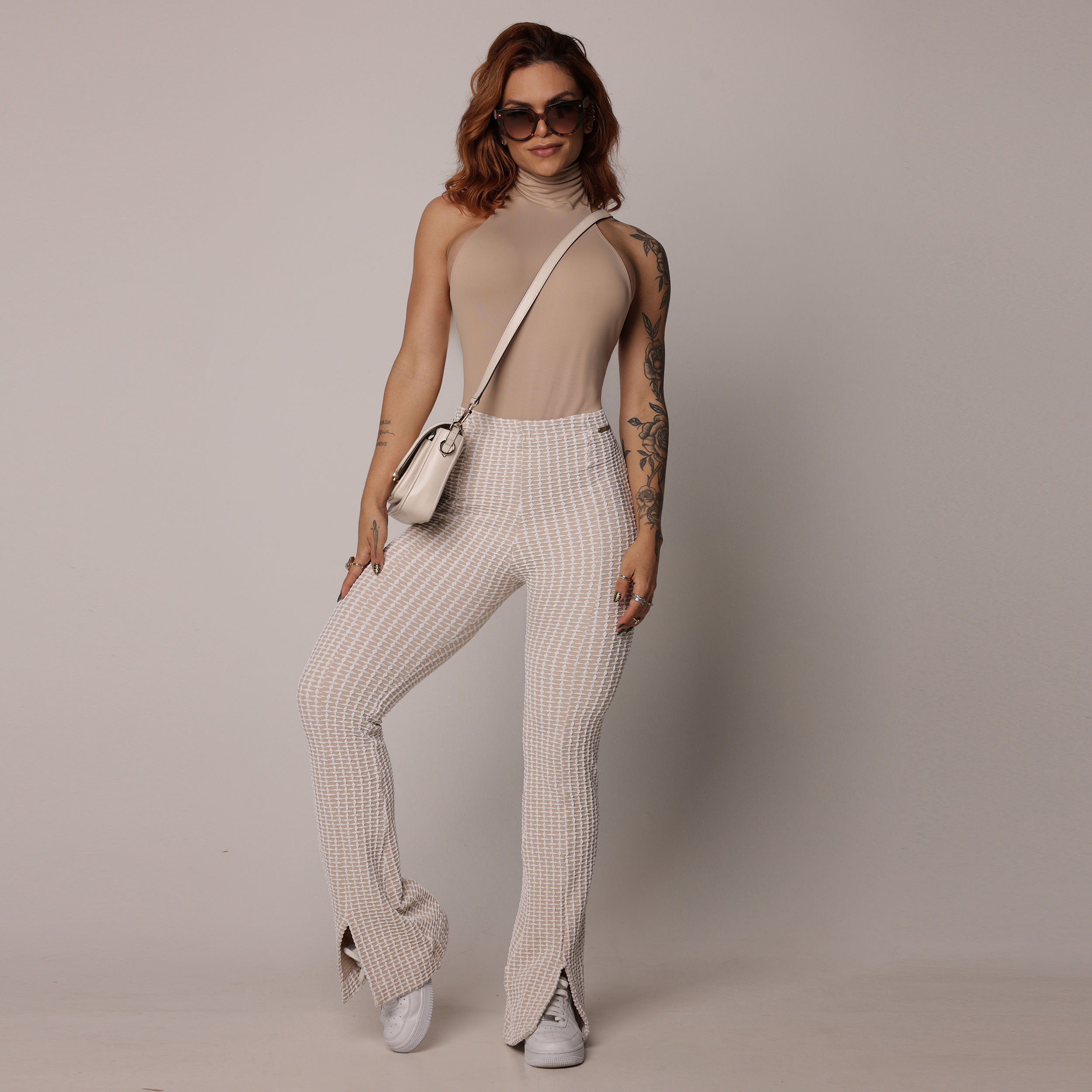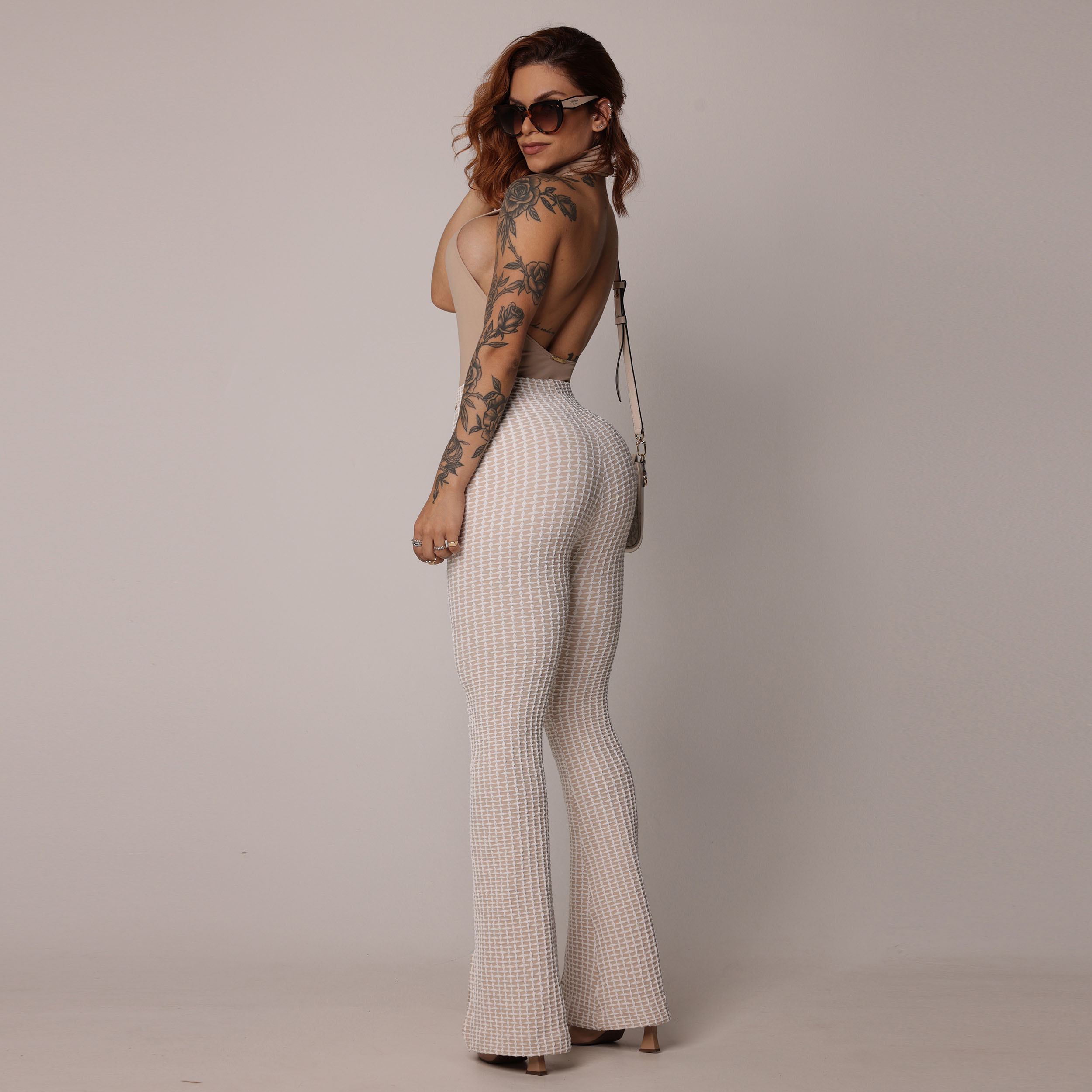 CALÇA FLARE JACQUARD LUXE NUDE