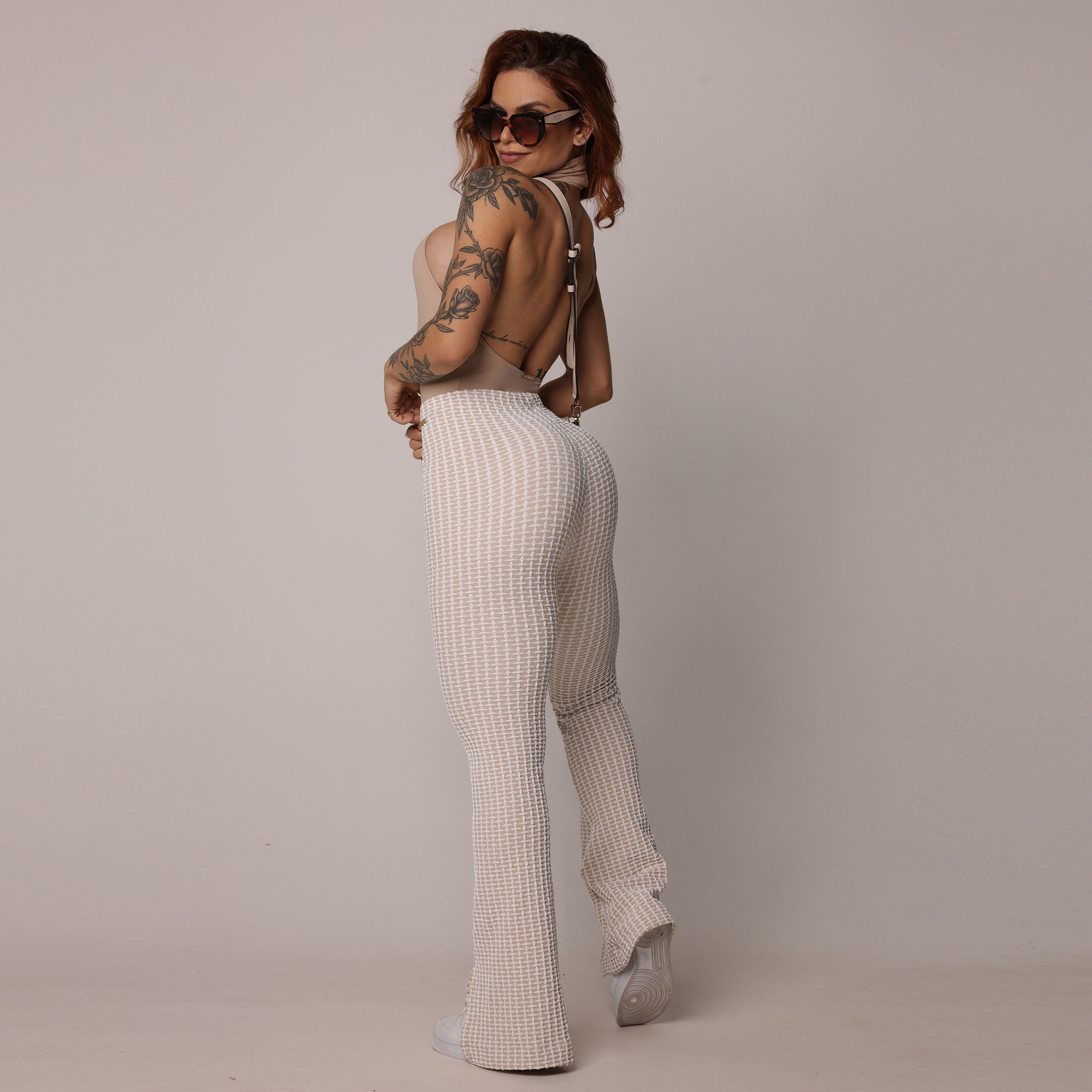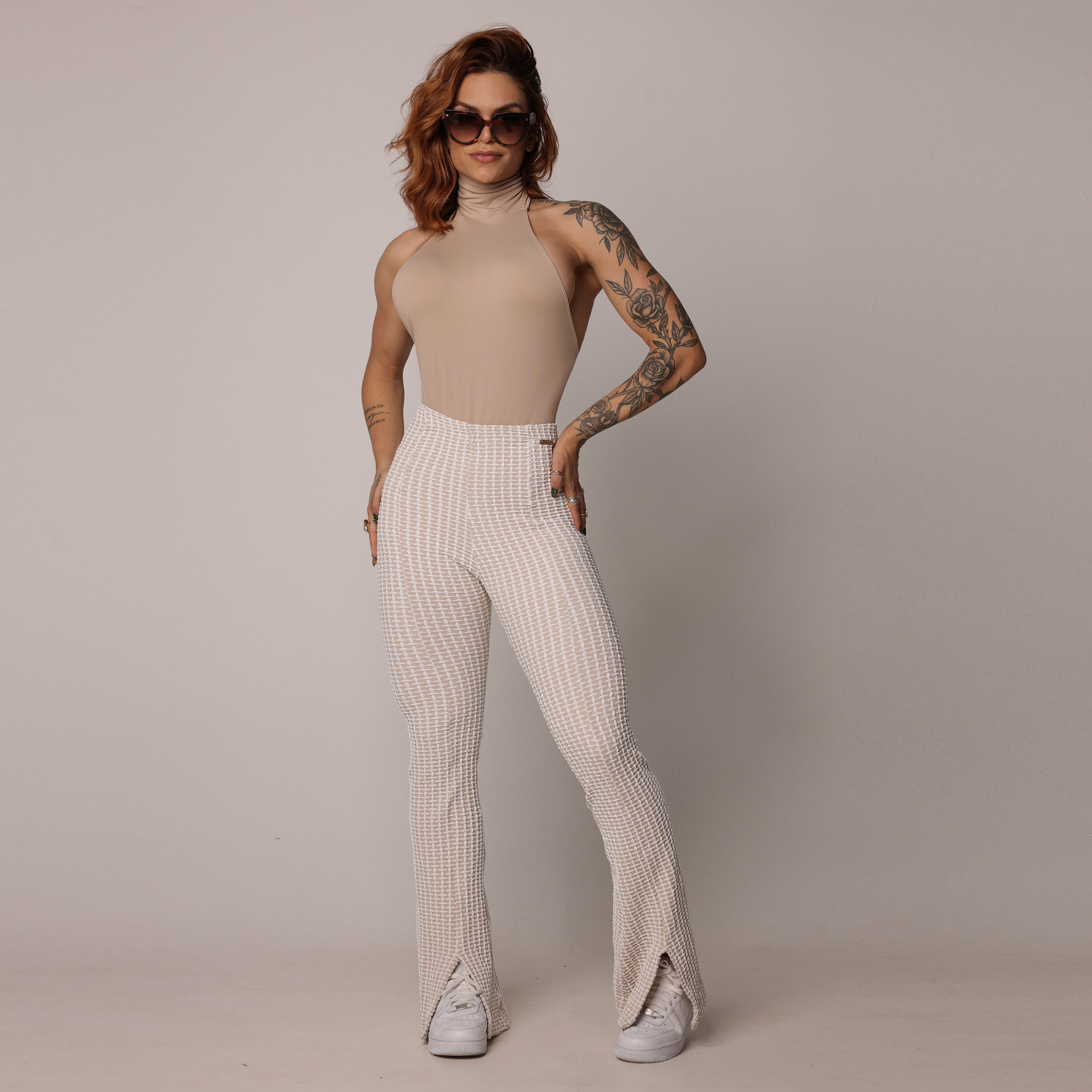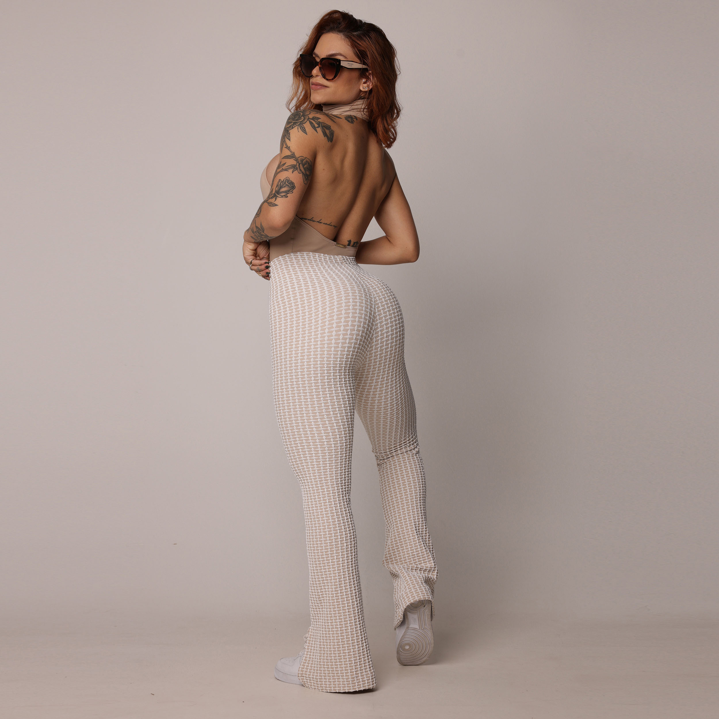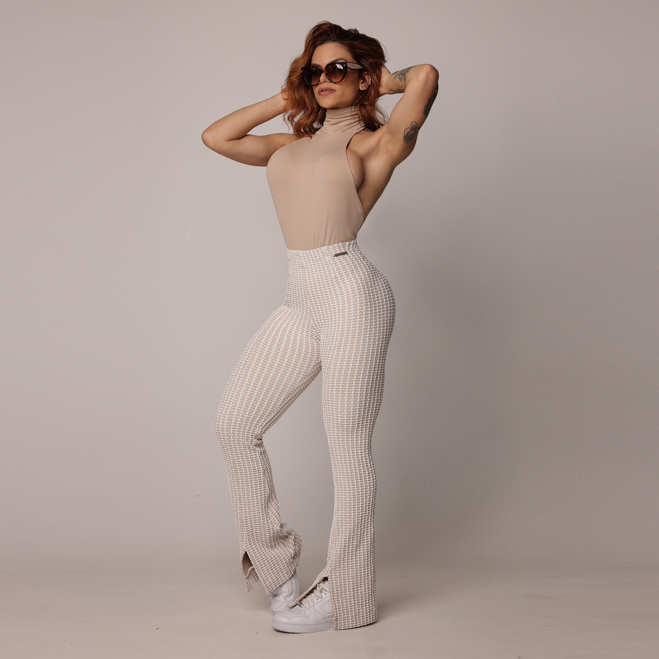 CALÇA FLARE JACQUARD LUXE NUDE