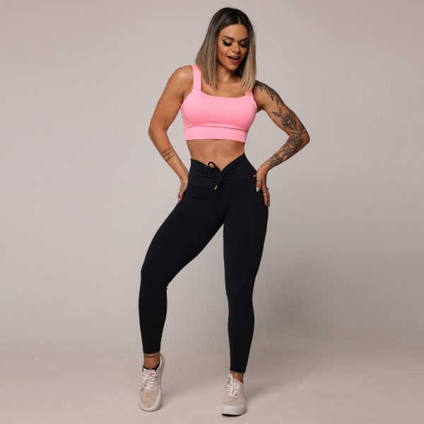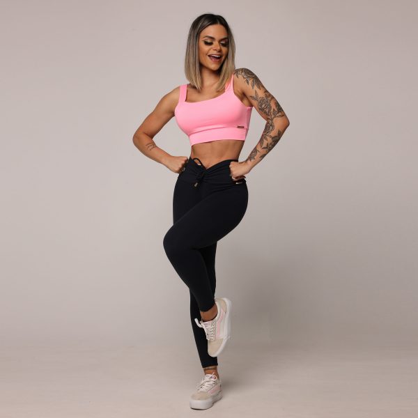 LEGGING INTENSE EMPINA BUMBUM PRETA COM ELASTICO ROSA NEON