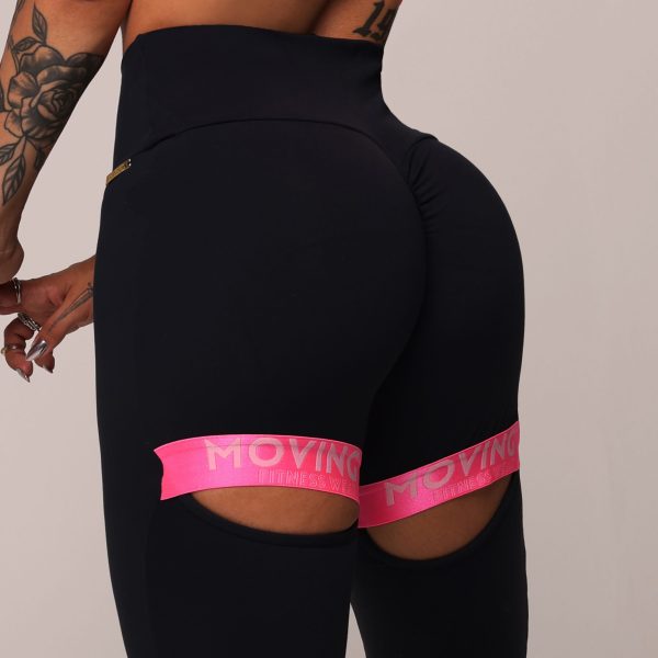 LEGGING STRIPES EMPINA BUMBUM PRETA COM ROSA