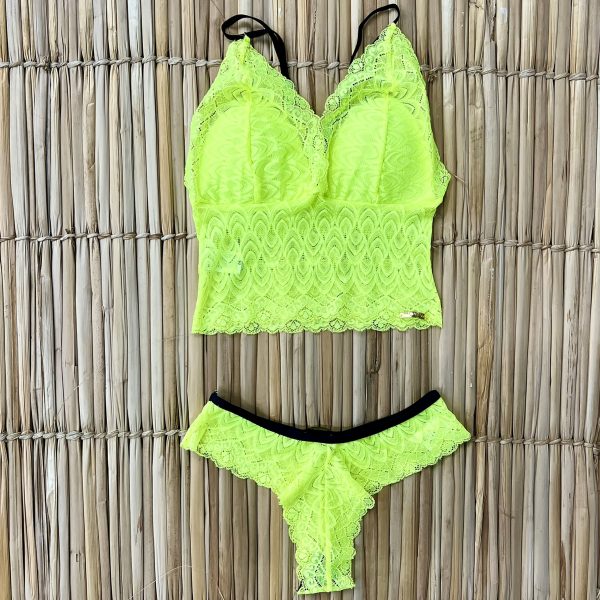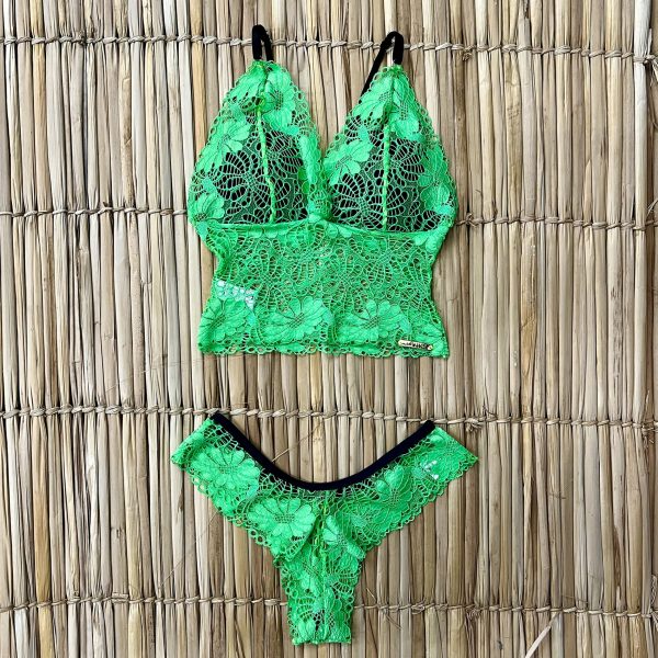CONJUNTO DE RENDA COM BOJO VERDE NEON