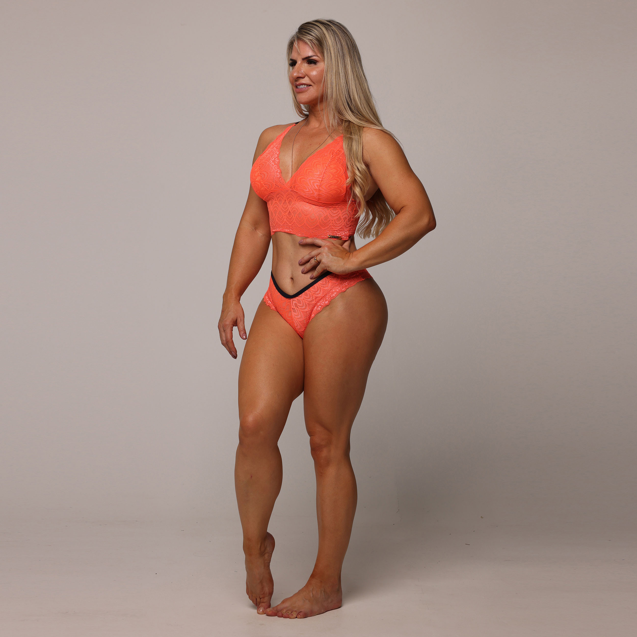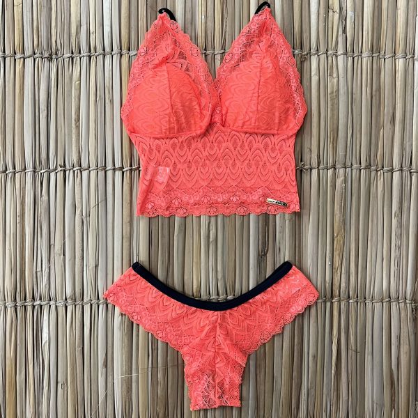 CONJUNTO DE RENDA COM BOJO LARANJA NEON