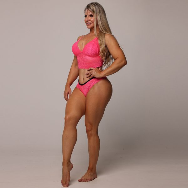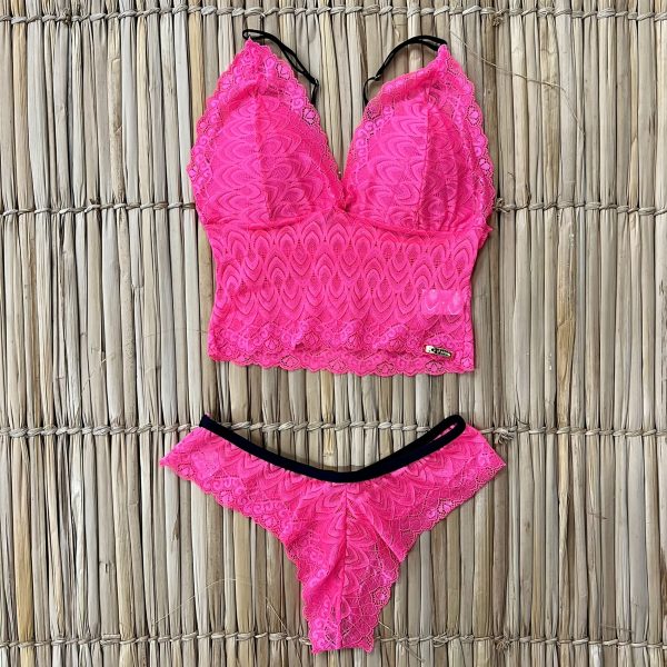 CONJUNTO DE RENDA COM BOJO ROSA NEON
