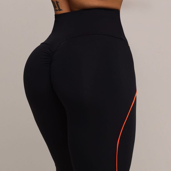 LEGGING LINEAR EMPINA BUMBUM PRETA COM CADARÇO LARANJA NEON