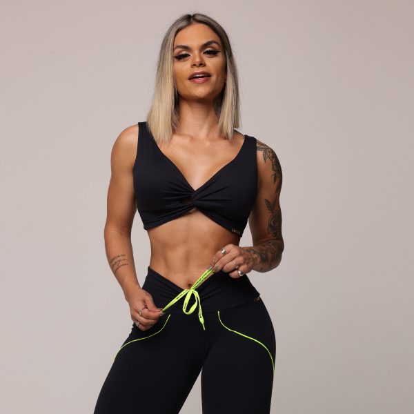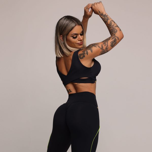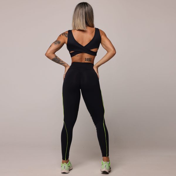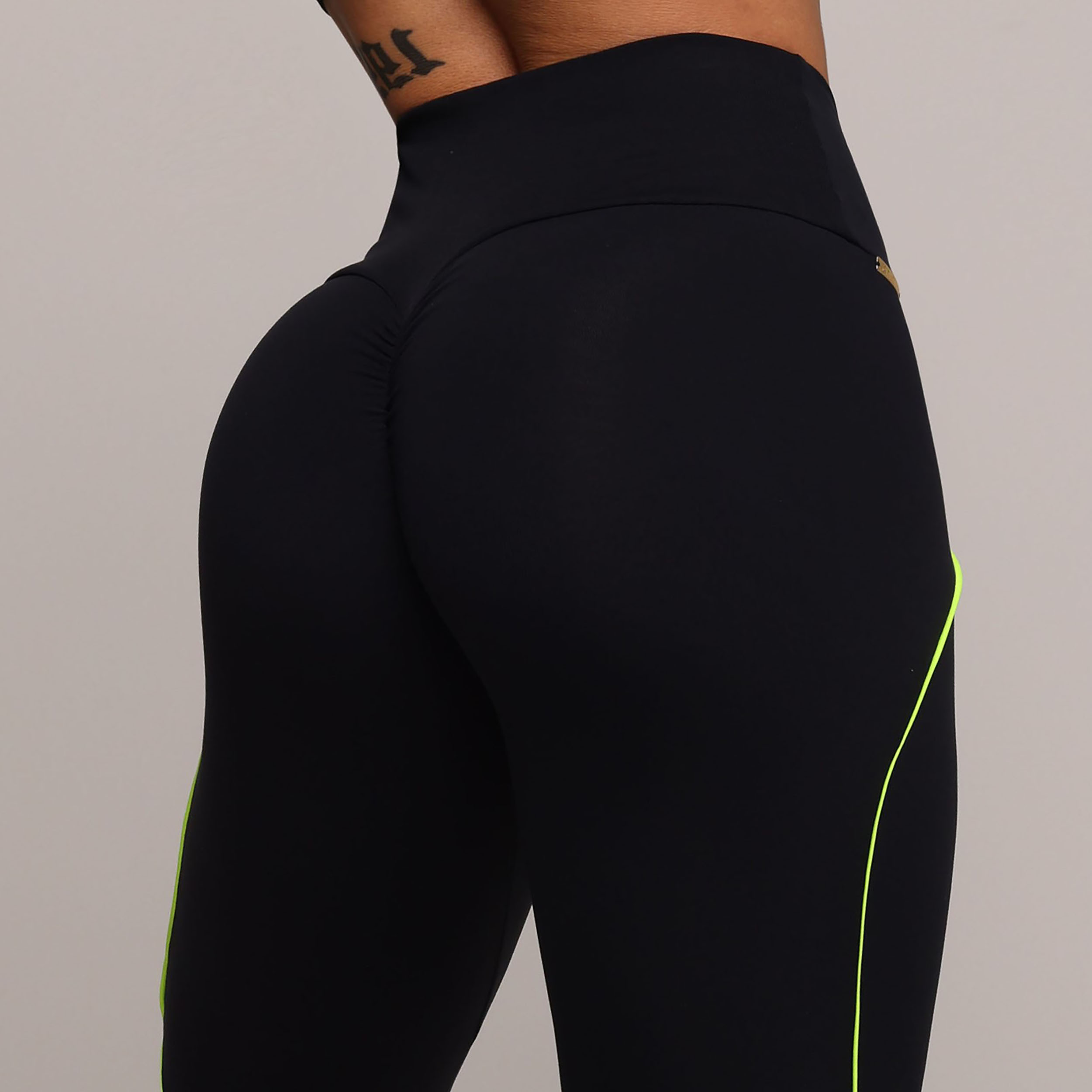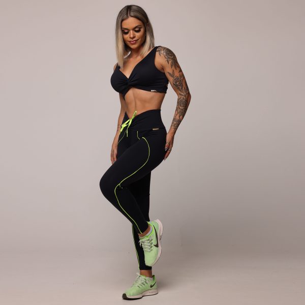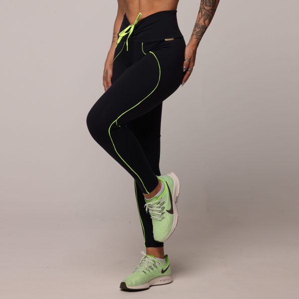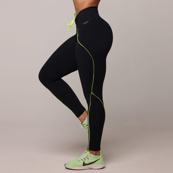 LEGGING LINEAR EMPINA BUMBUM PRETA COM CADARÇO AMARELO NEON