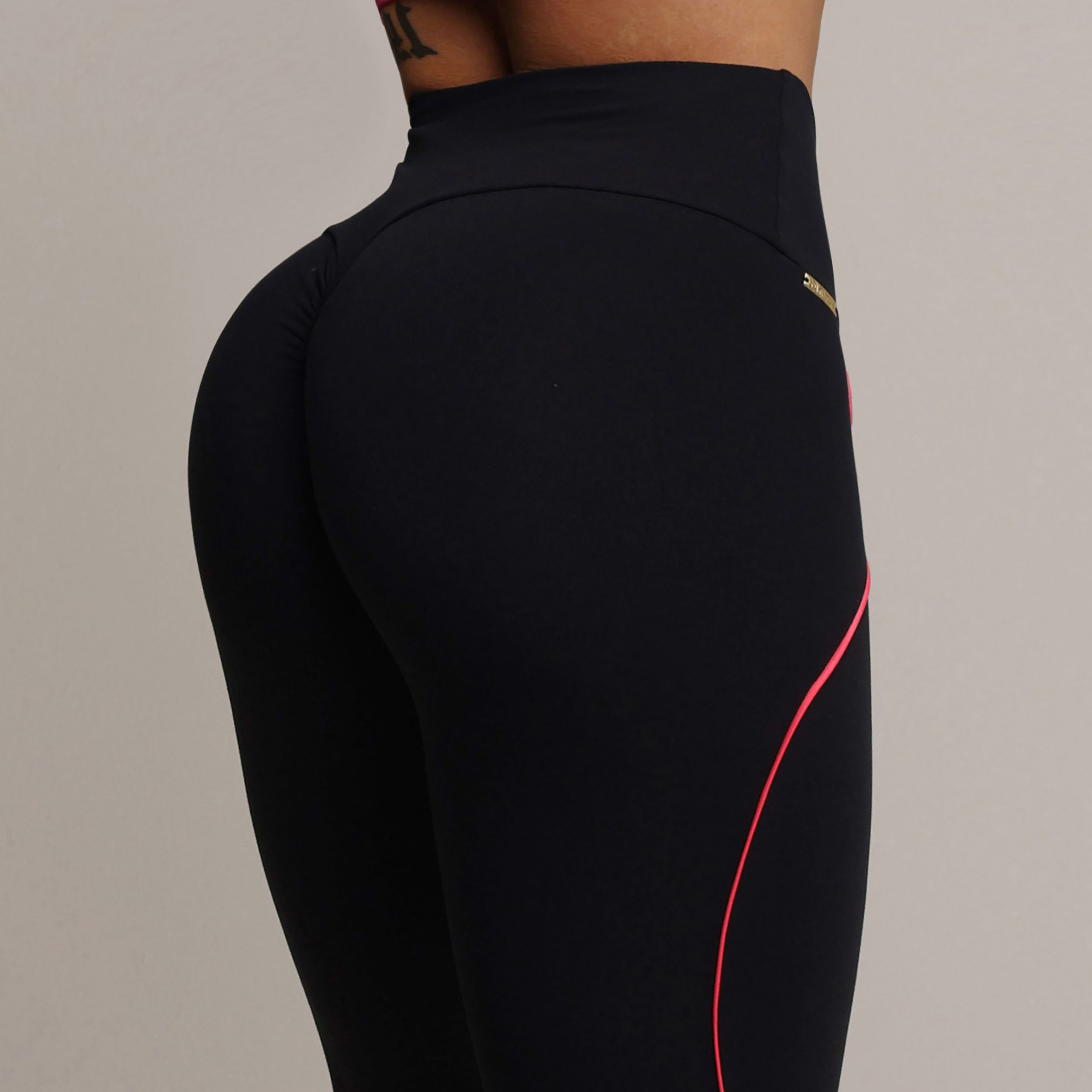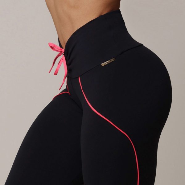 LEGGING LINEAR EMPINA BUMBUM PRETA COM CADARÇO ROSA NEON