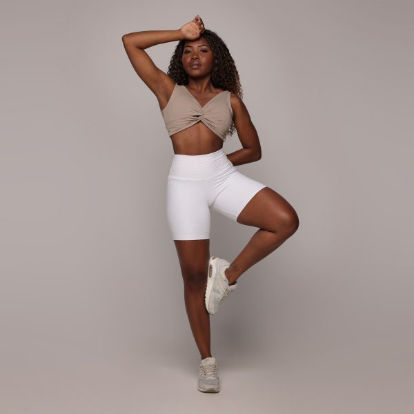 SHORT BOLSINHO EMPINA BUMBUM JACQUARD CROCO BRANCO