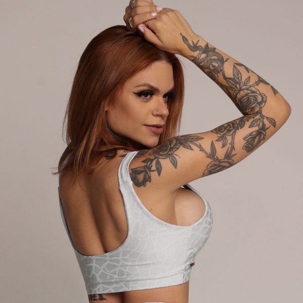 O detalhe vazado no meio dos seios, do Top Georgia, destaca o colo e proporciona a sustentação que você precisa, trazendo charme a cada movimento. Eleve seu look com este top que combina sutileza e suporte.