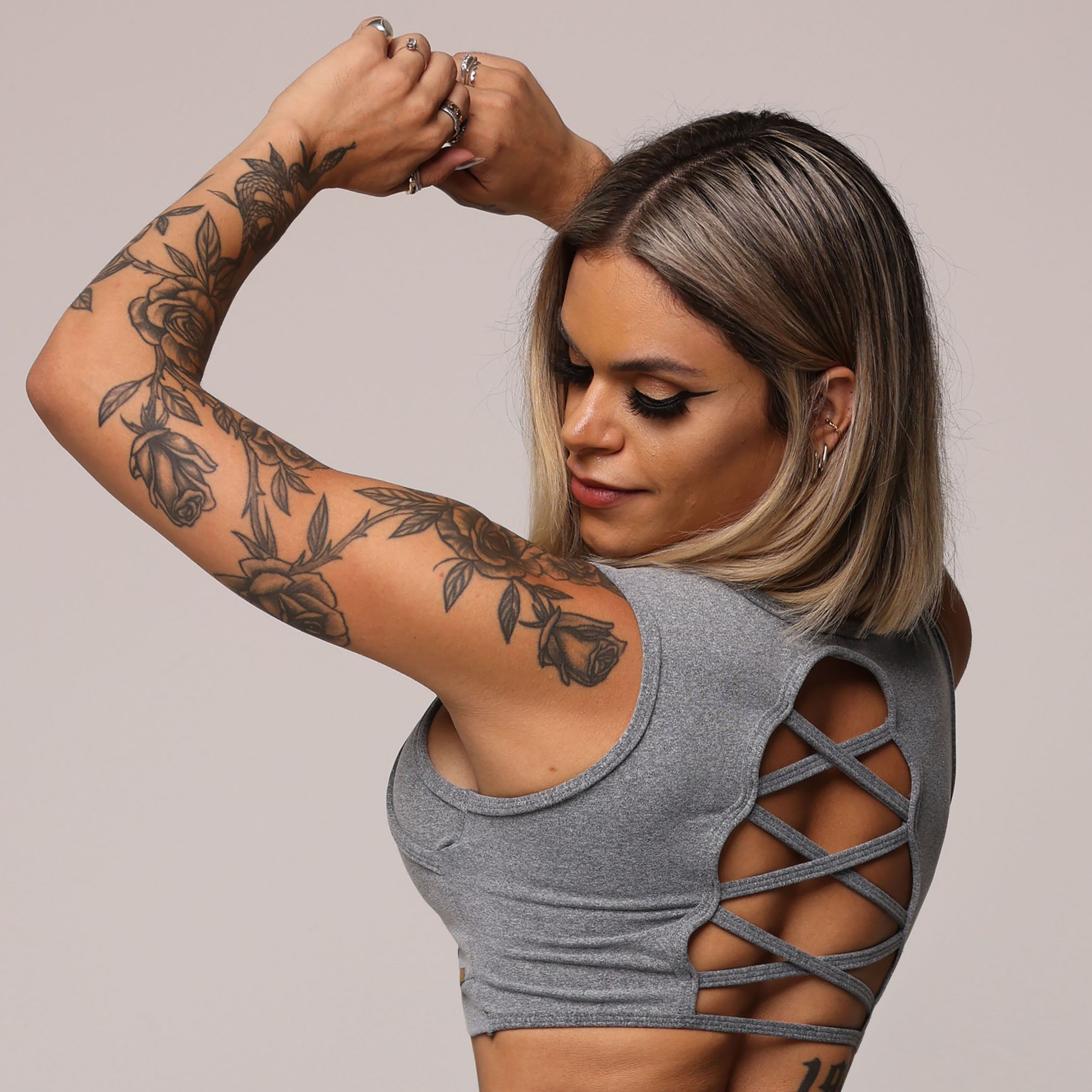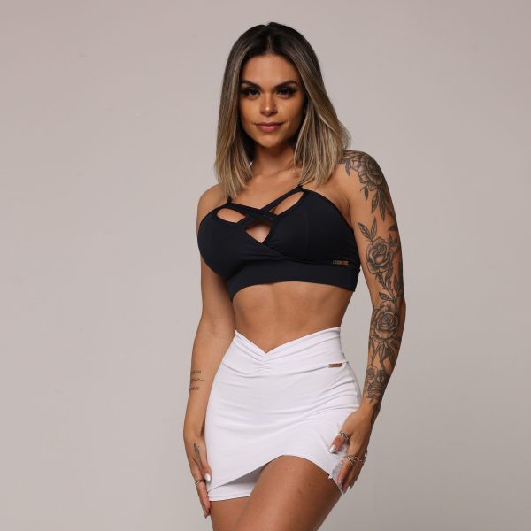 Este top moderno e funcional é o seu segredo para treinos incríveis. Com um recorte abaixo do viés que realça seus seios e um detalhe transpassado nas costas, ele combina elegância e charme. O elástico embutido na pala mantém tudo no lugar, e a costura reforçada garante resistência com estilo.