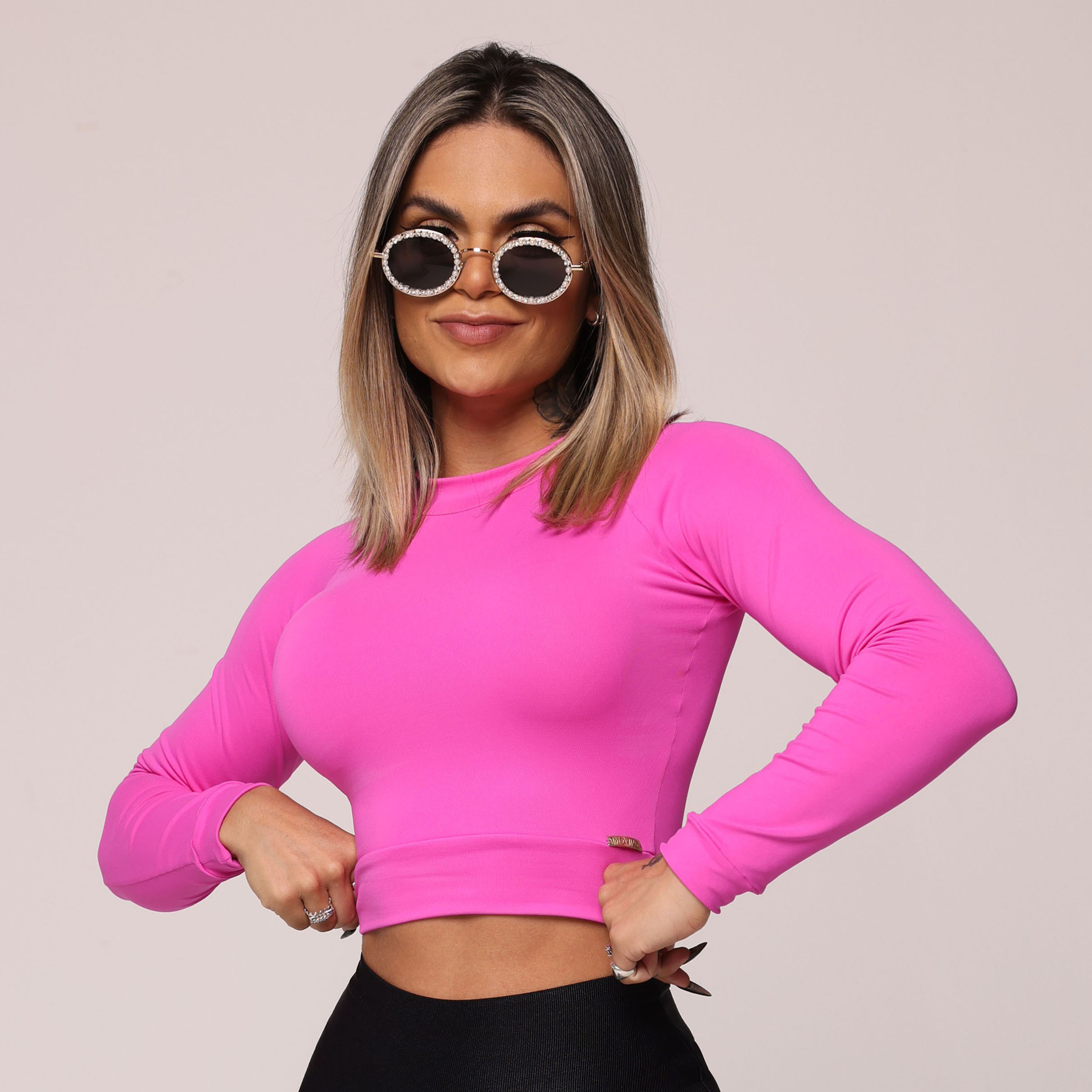 CROPPED CARMEL MANGA LONGA ROSA BARBIE