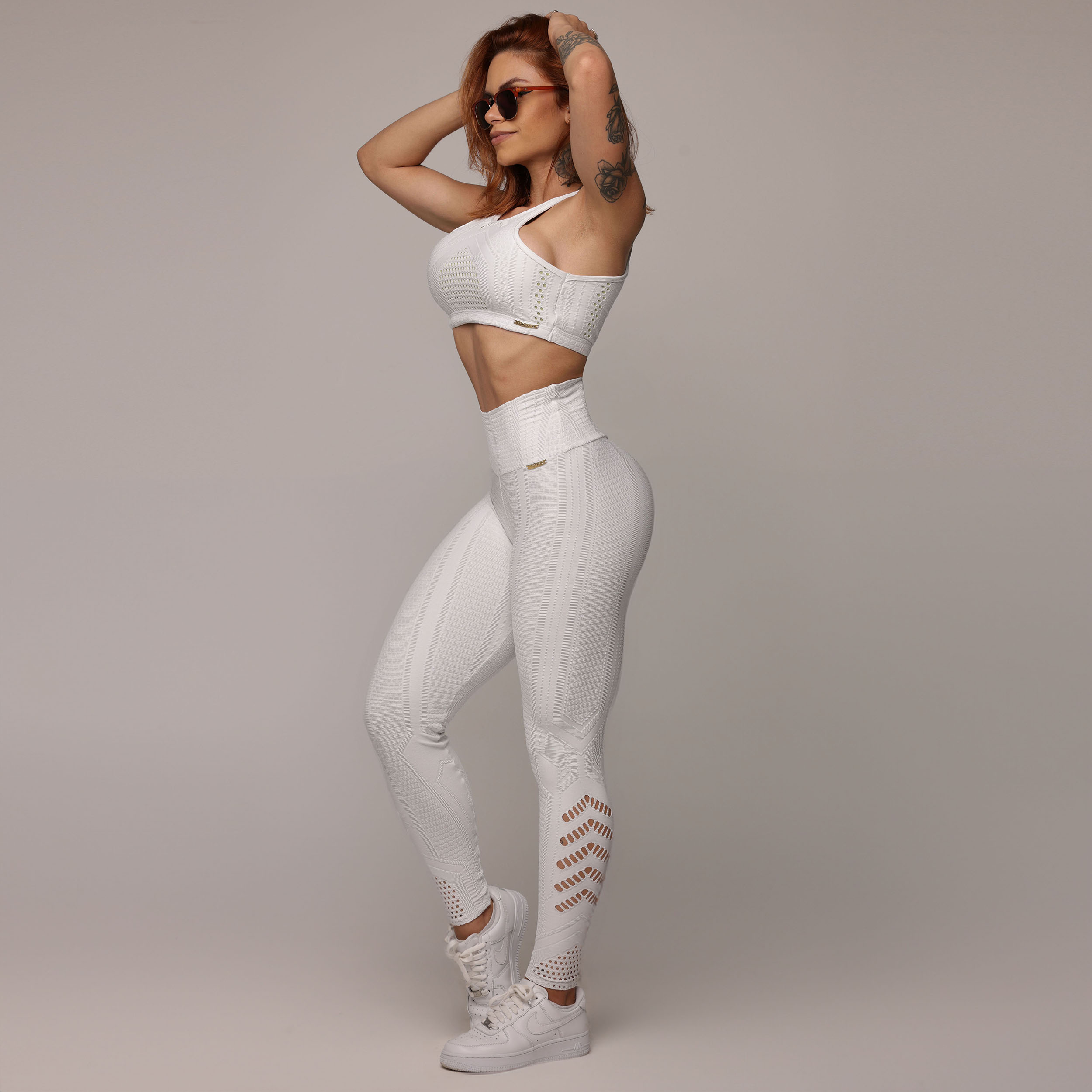 LEGGING EMPINA BUMBUM JACQUARD DOTS BRANCO