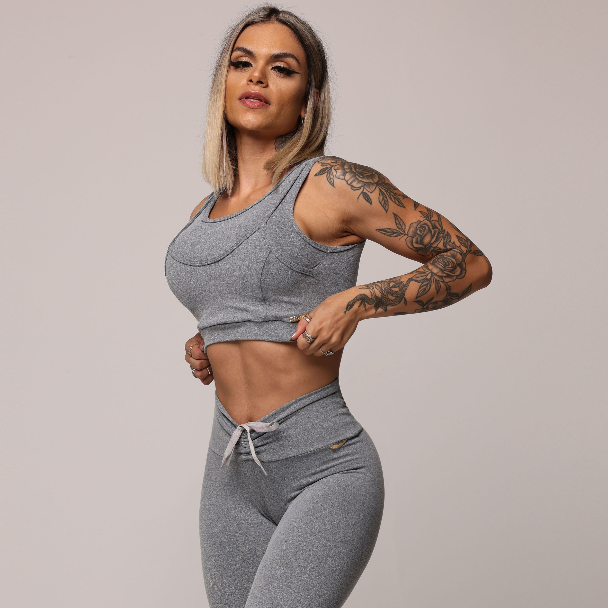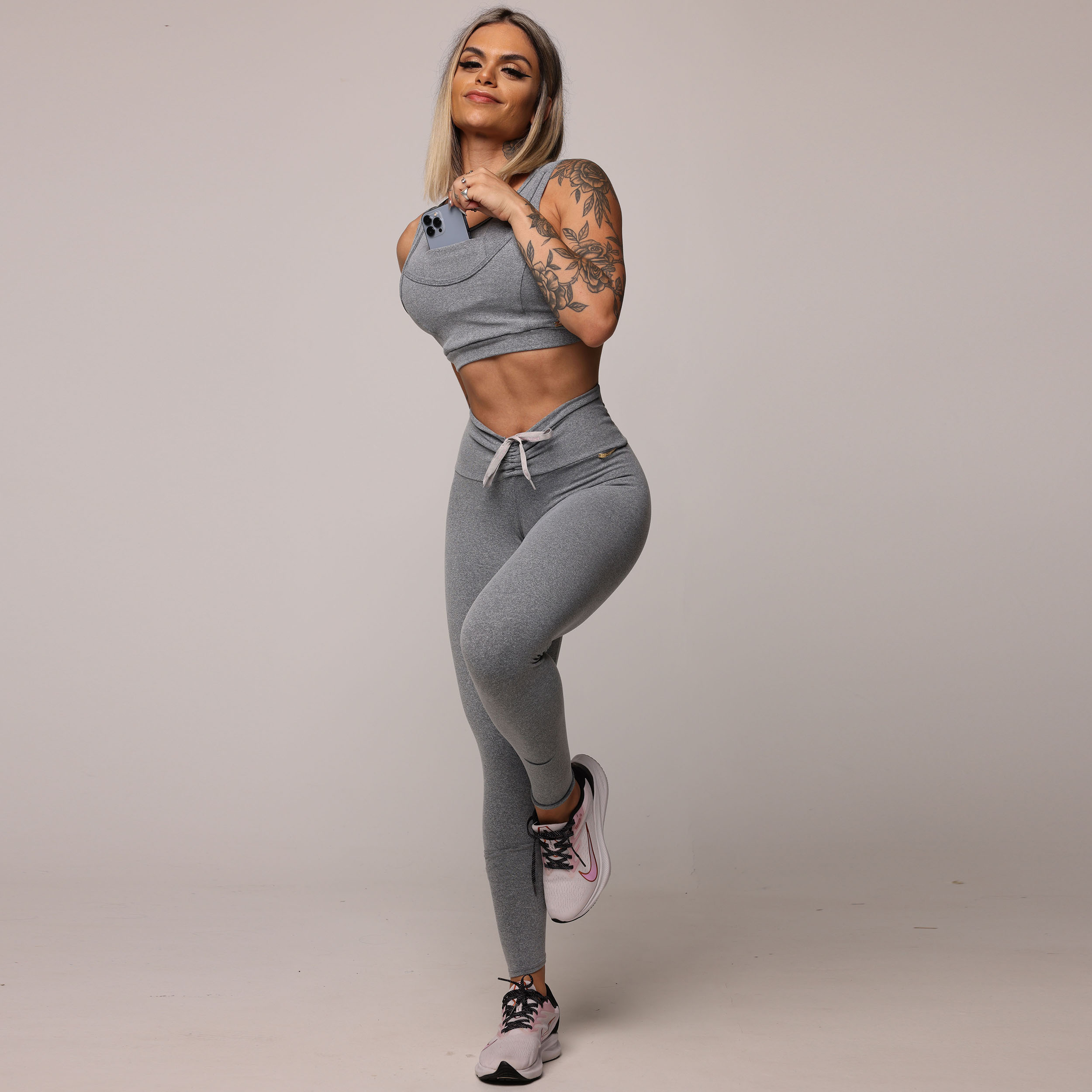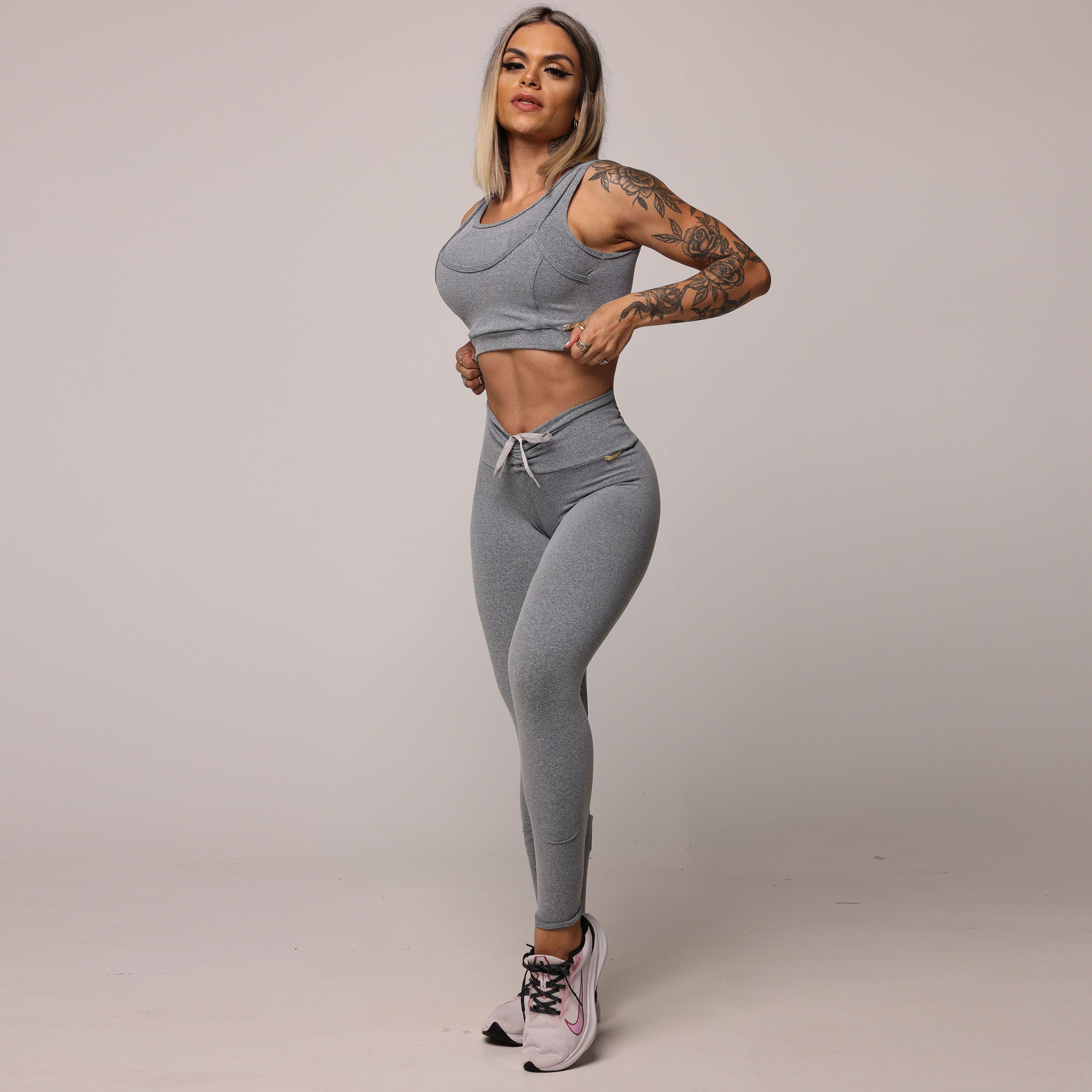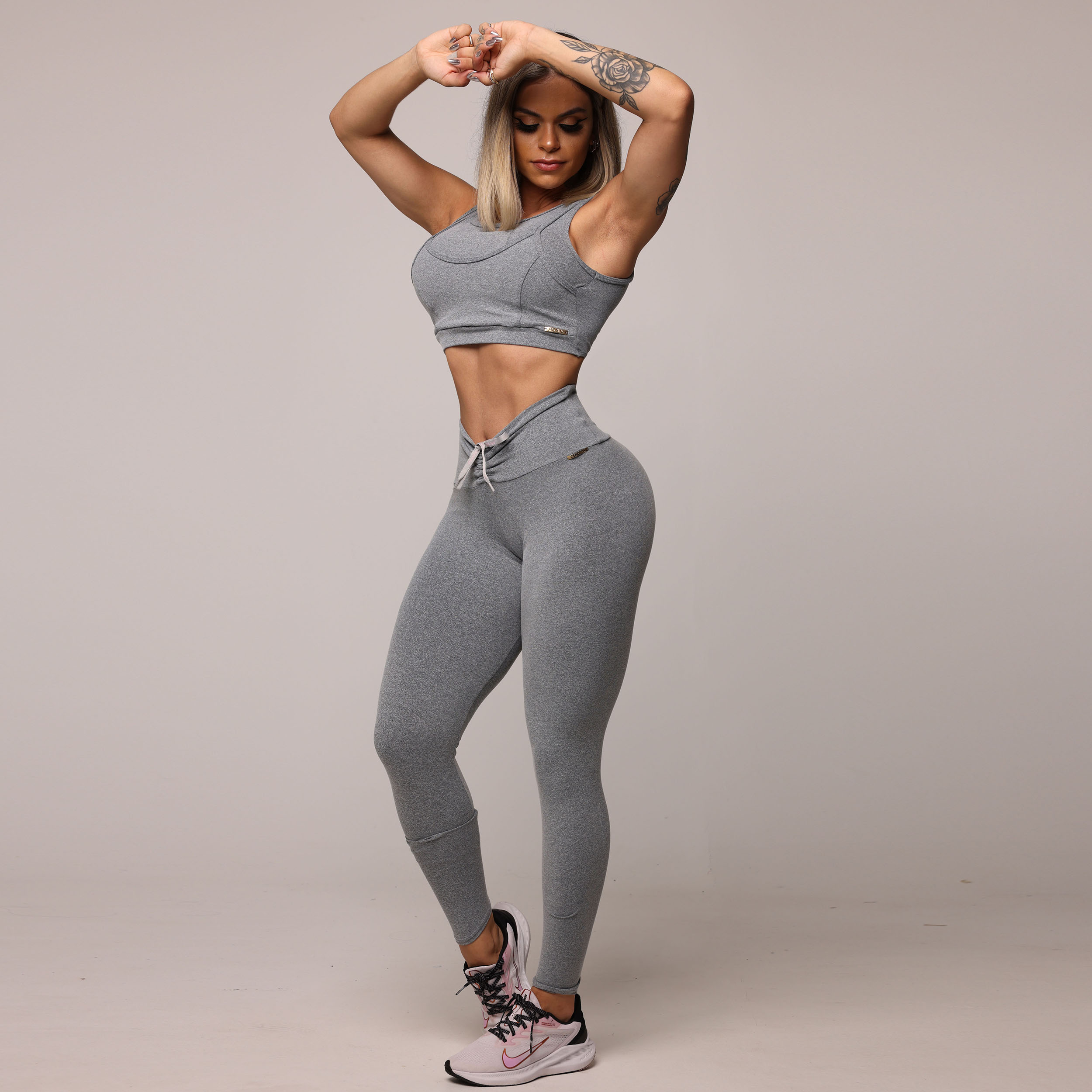 LEGGING EMPINA BUMBUM MESCLA COM CADARÇO CINZA COM ROSA BEBÊ