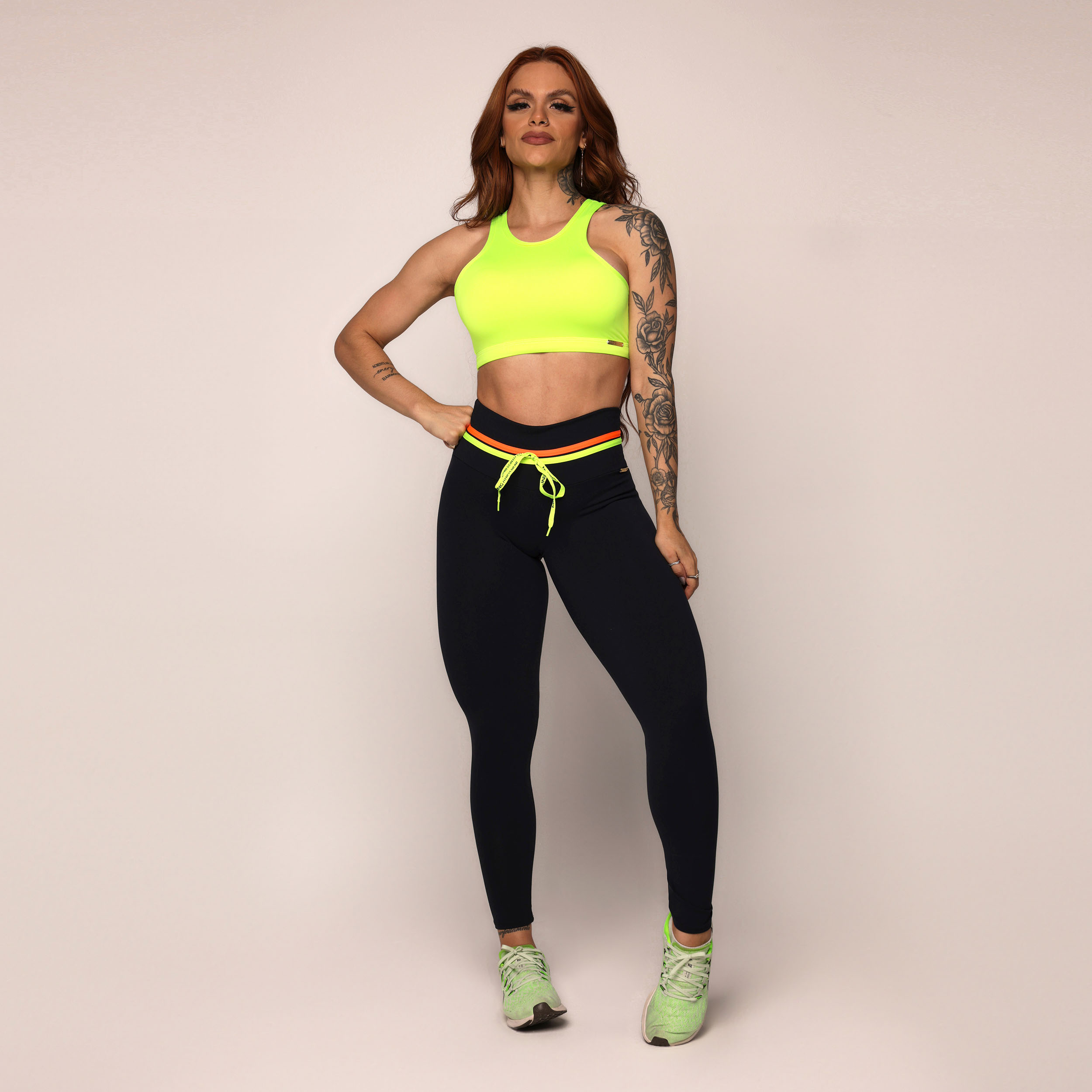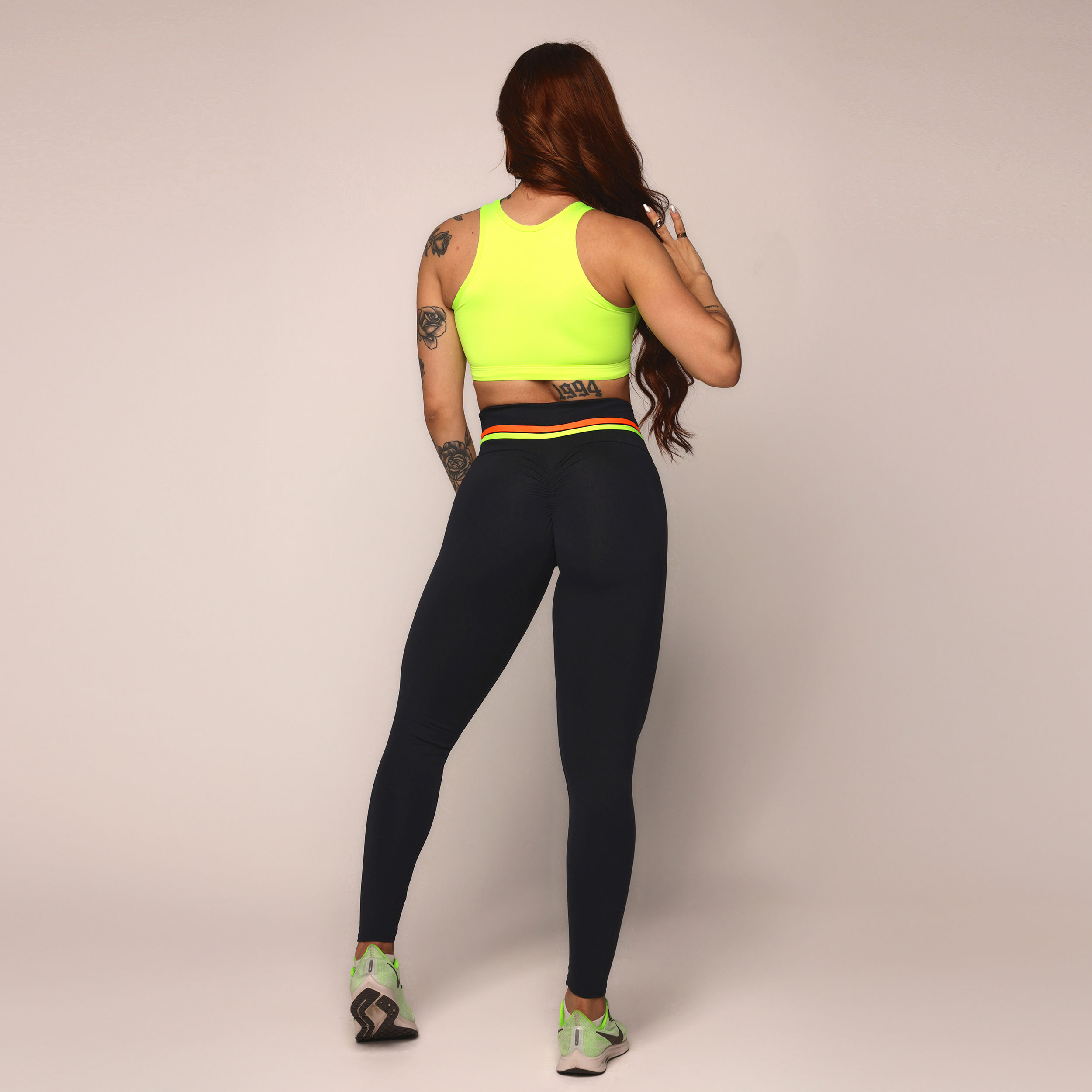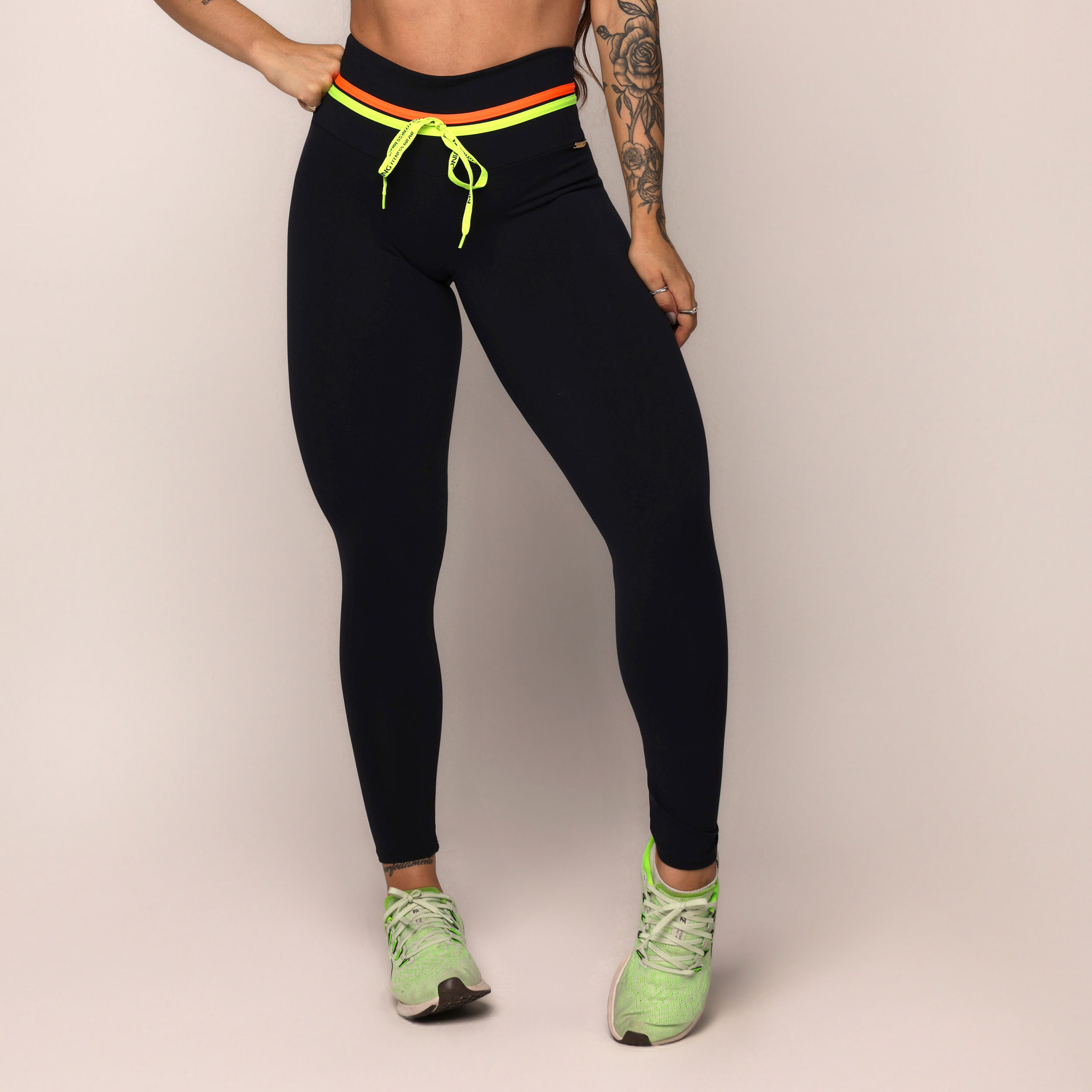 LEGGING EMPINA BUMBUM PRETA COM AMARELO E LARANJA NEON