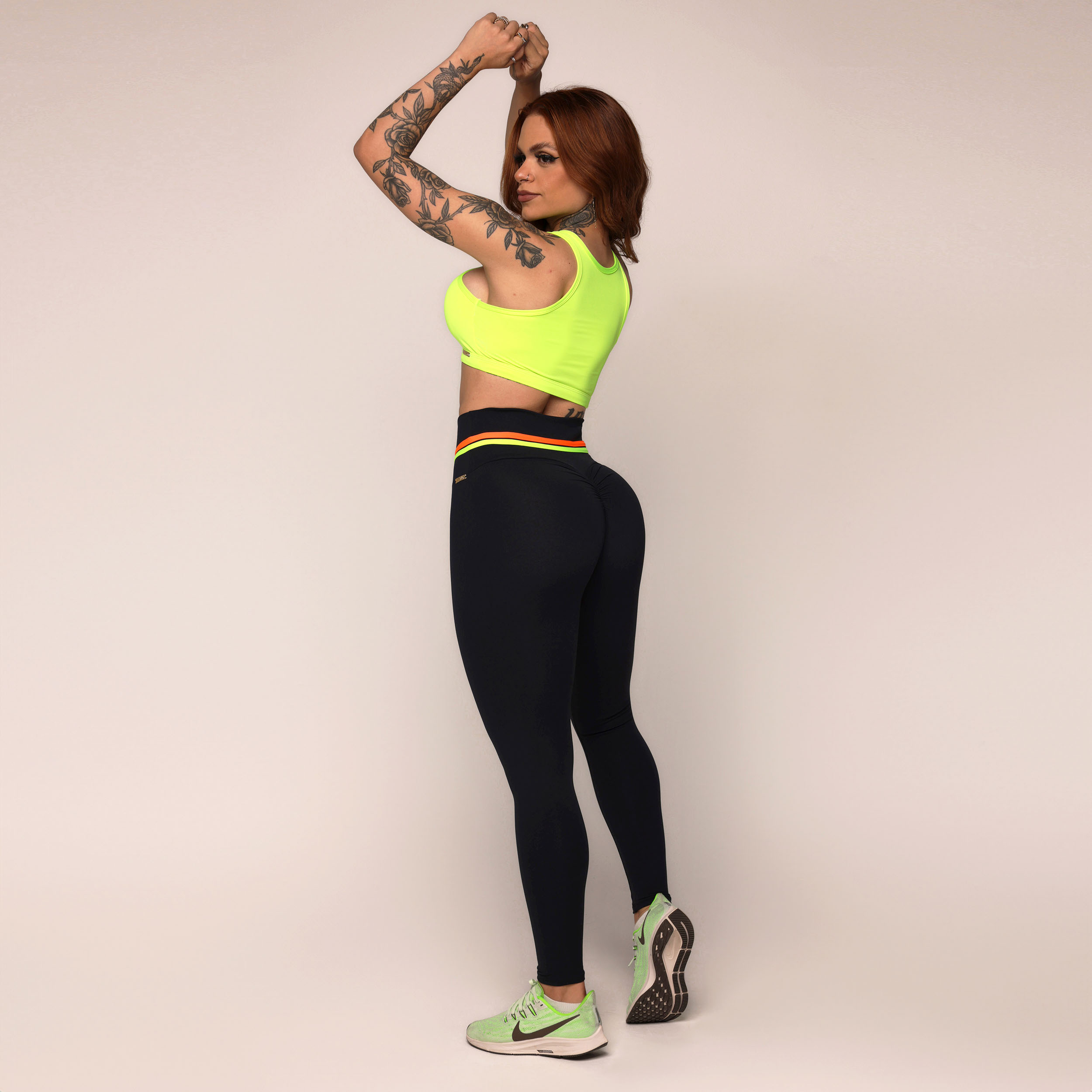 A nossa queridinha Legging Empina Bumbum ganha um toque de personalidade, com detalhes em neon. A combinação perfeita entre o clássico e o moderno. O preto atemporal ganha vida com detalhes vibrantes, criando um contraste ousado e cheio de personalidade.