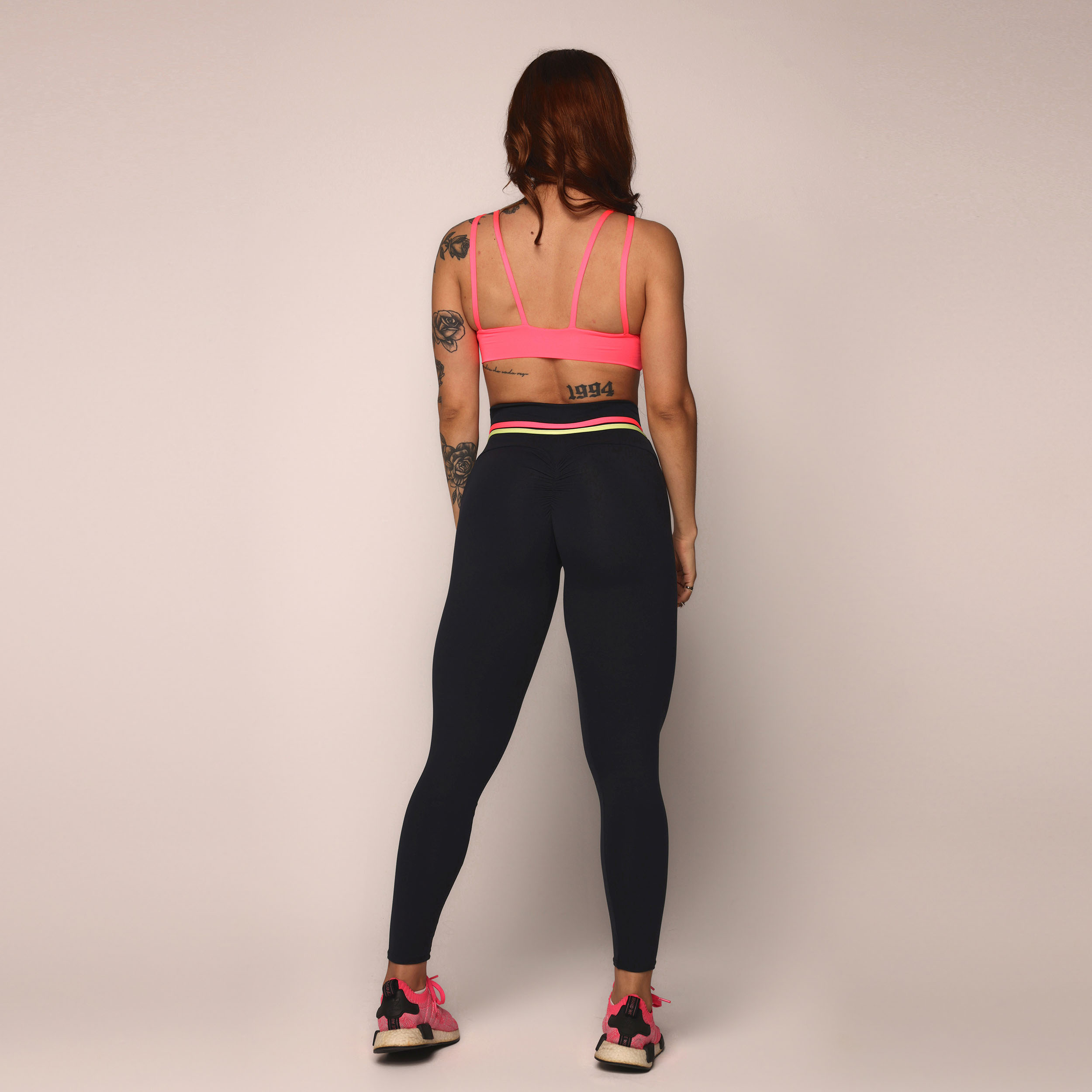 LEGGING EMPINA BUMBUM PRETA COM ROSA FLÚOR E LIMA