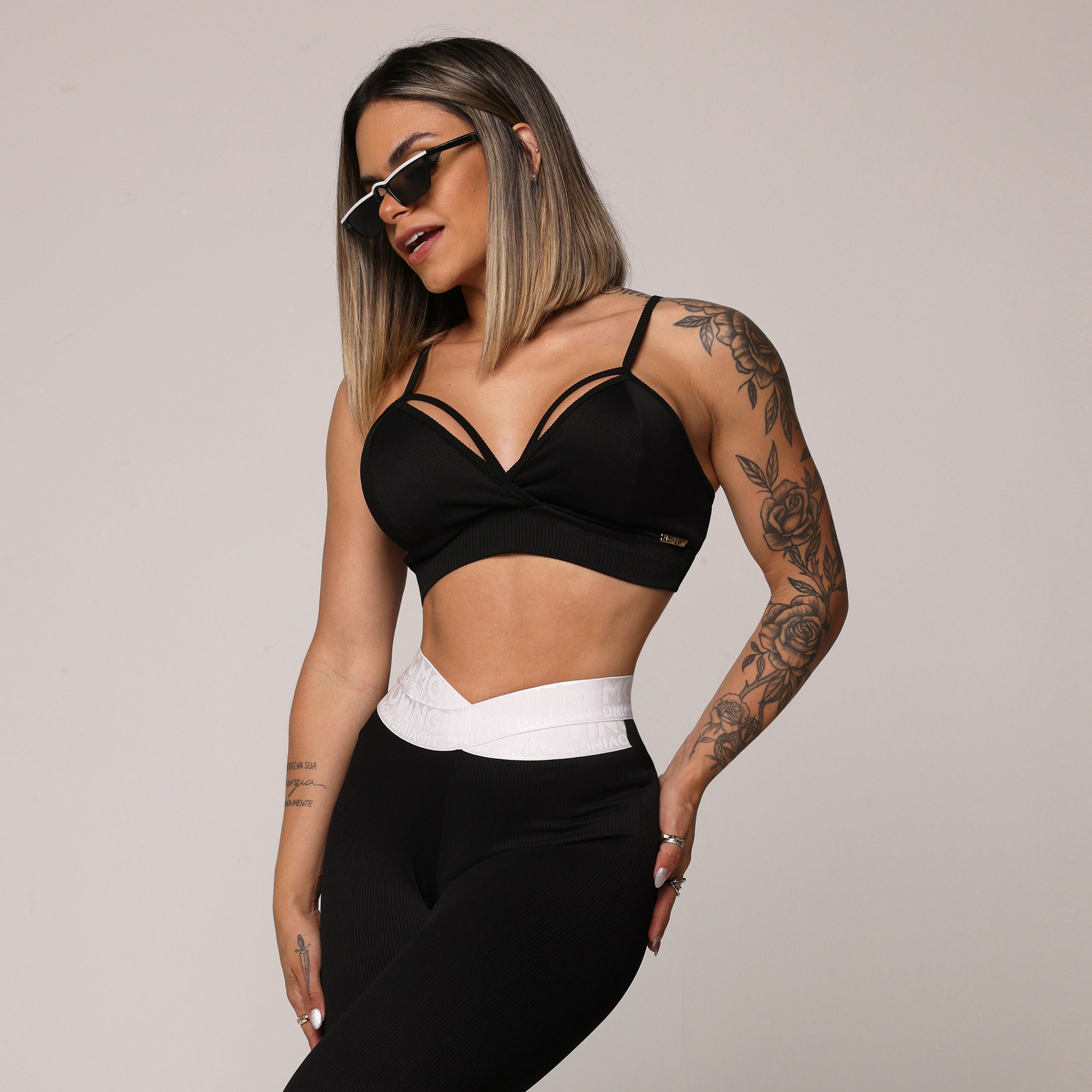 A Legging Hit une funcionalidade e estilo de forma única. O elástico na cintura proporciona um ajuste firme e seguro. O detalhe cruzado no elástico cria um efeito em V, que alonga a cintura e adiciona um toque de elegância.