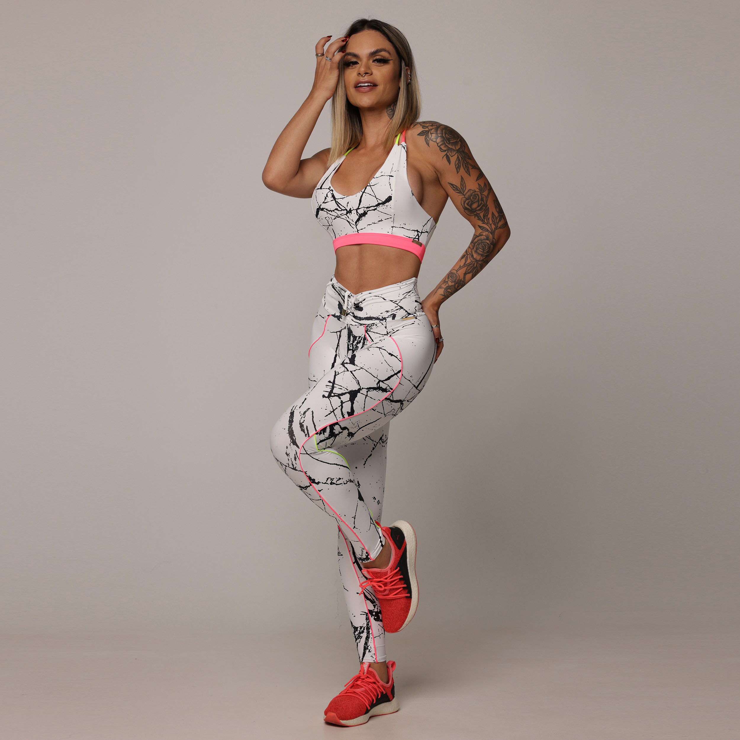 A Legging Linear Empina Bumbum é um tributo ao design inovador. O detalhe com vivo que percorre a perna traz mais curvas e definição à silhueta. O cós em V na frente alonga a cintura, enquanto a costura empina bumbum acentua o contorno do quadril, proporcionando um ajuste que valoriza seu corpo de maneira elegante e moderna.