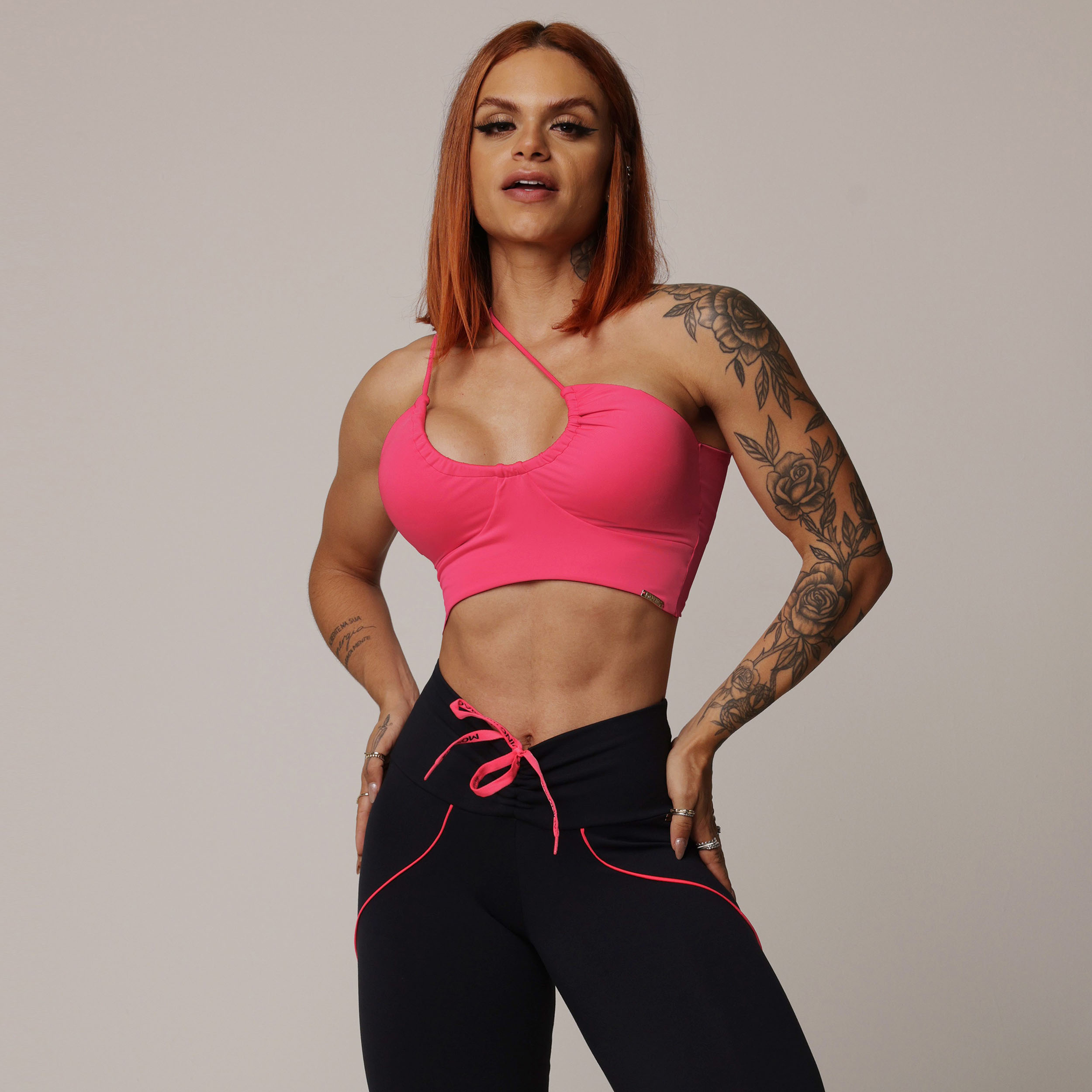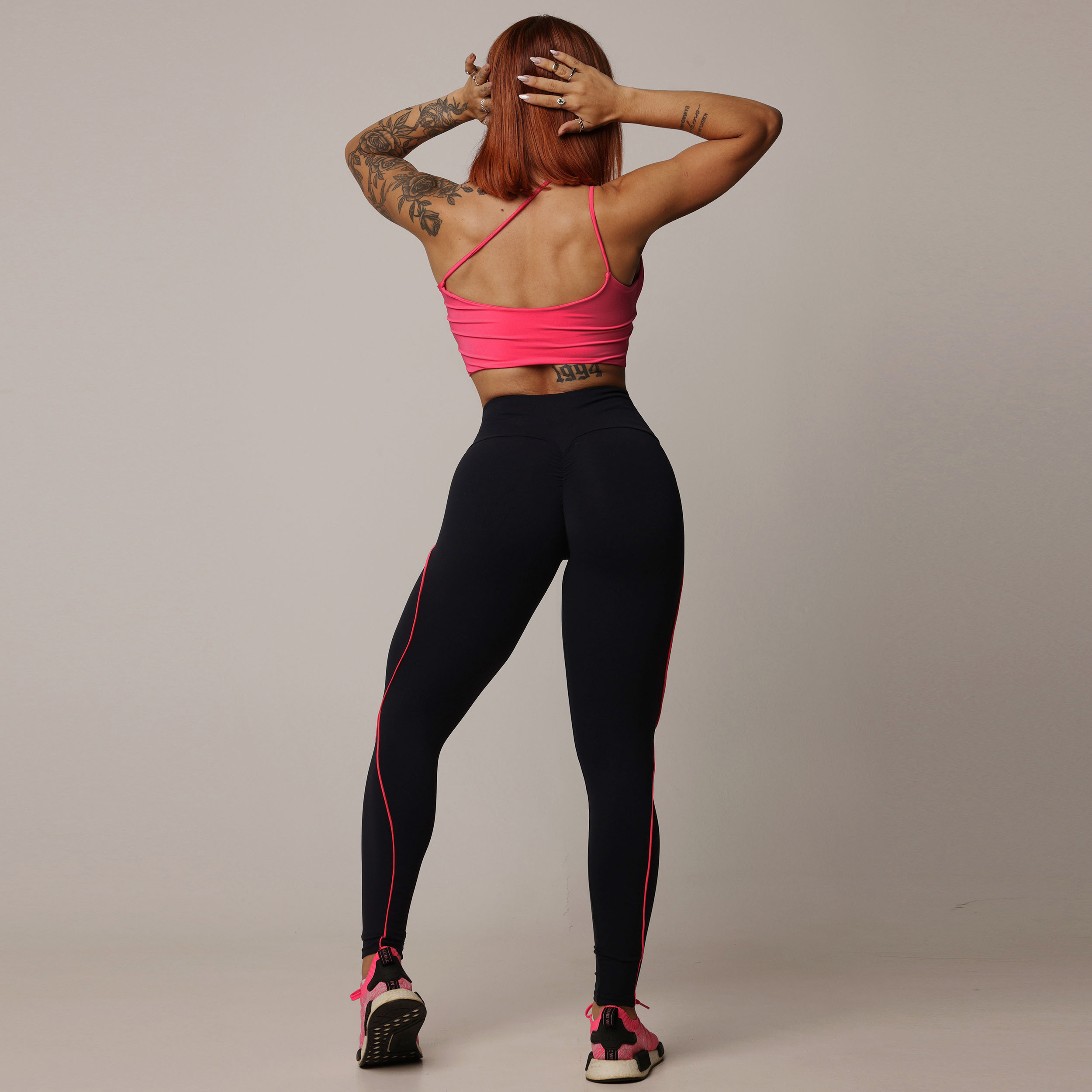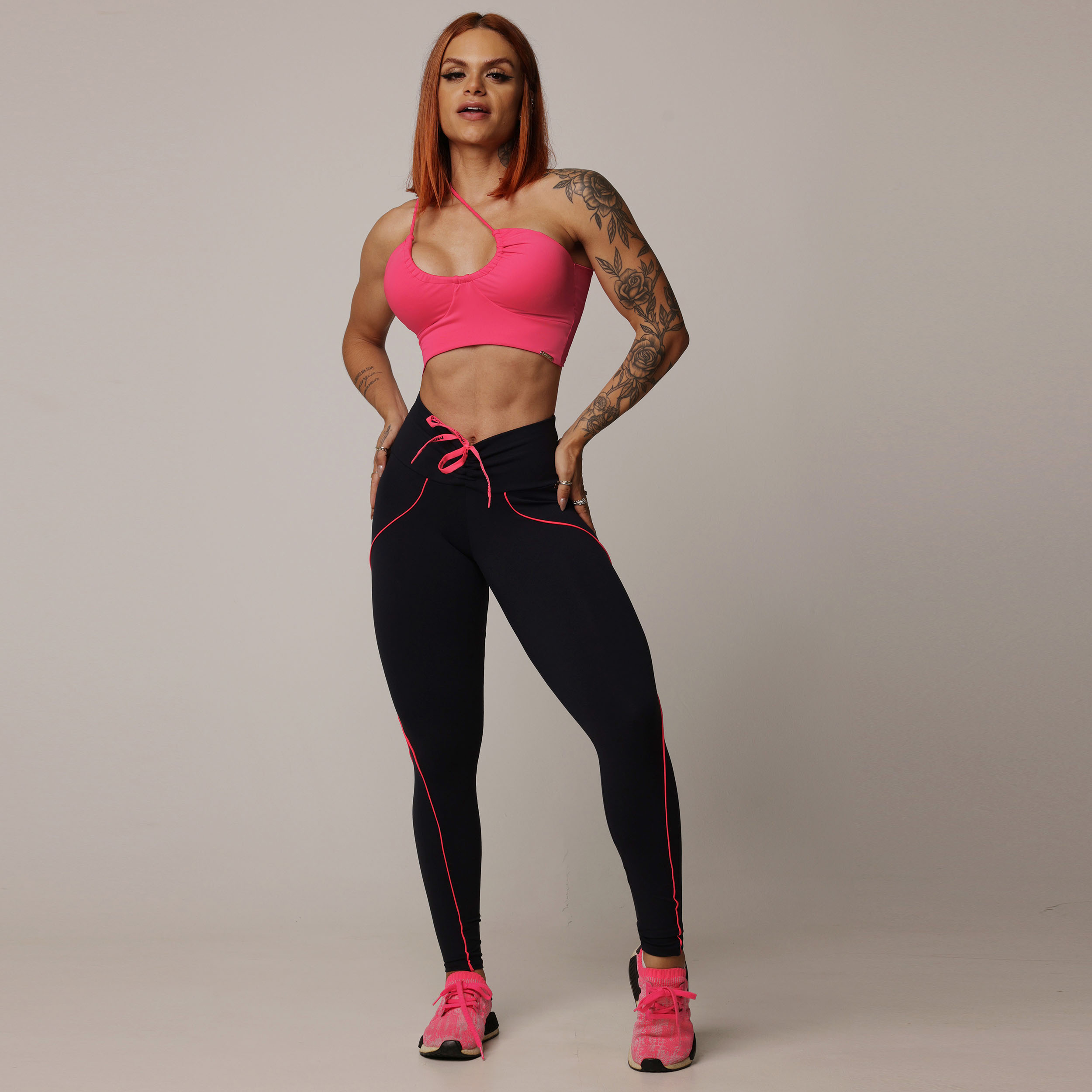 LEGGING LINEAR EMPINA BUMBUM PRETA COM CADARÇO ROSA NEON