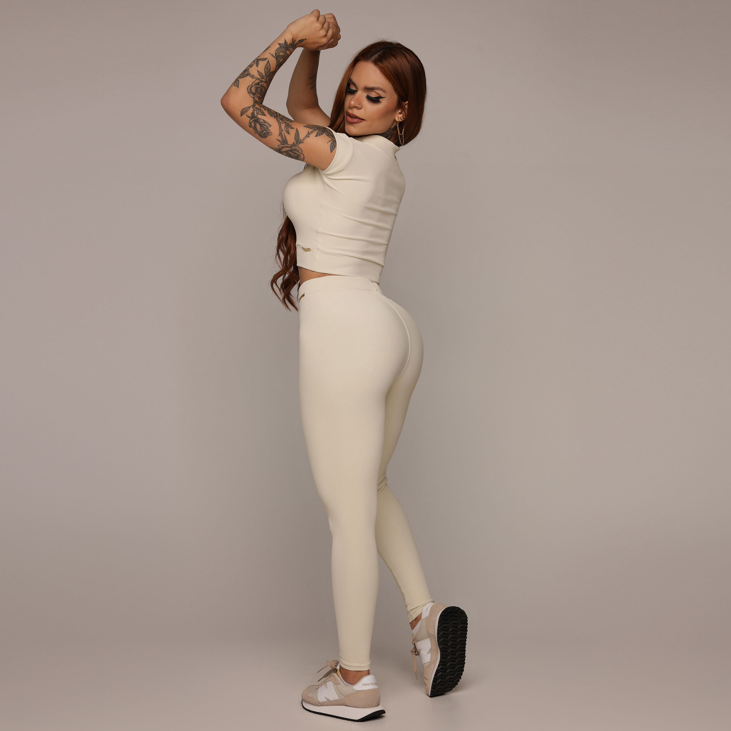 LEGGING PULSE JACQUARD CANELADO BAUNILHA