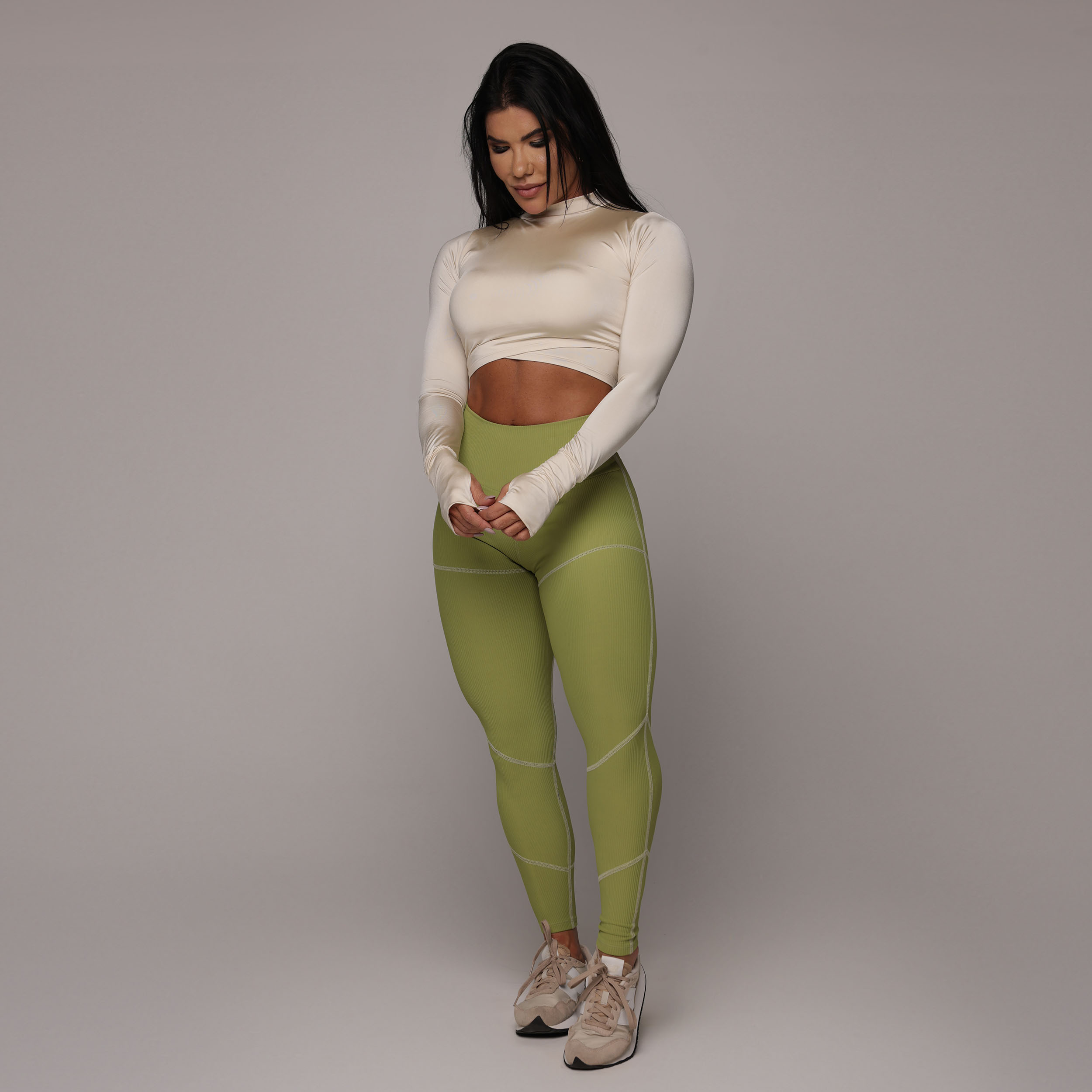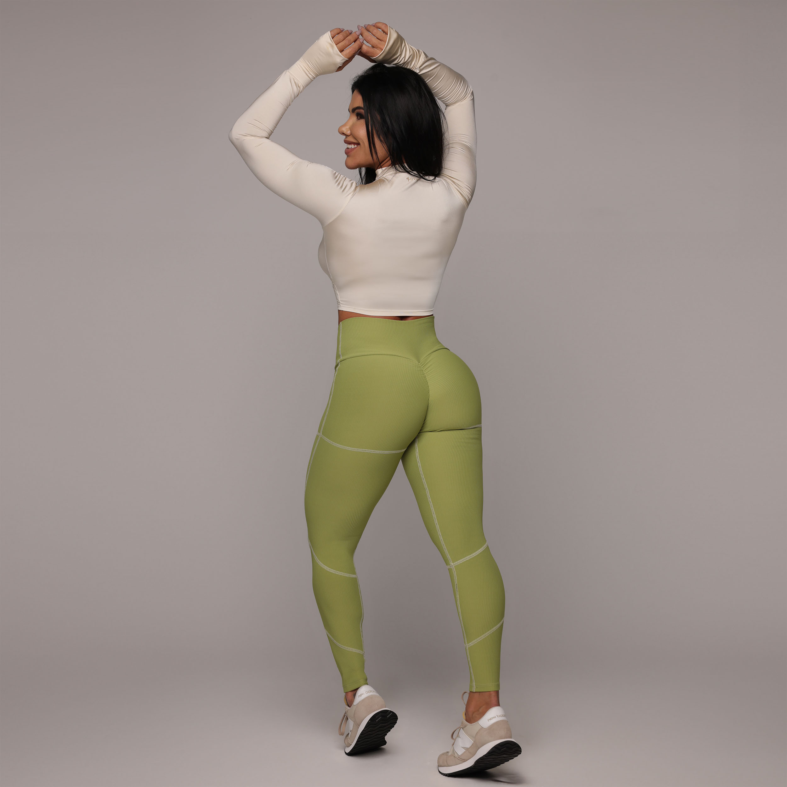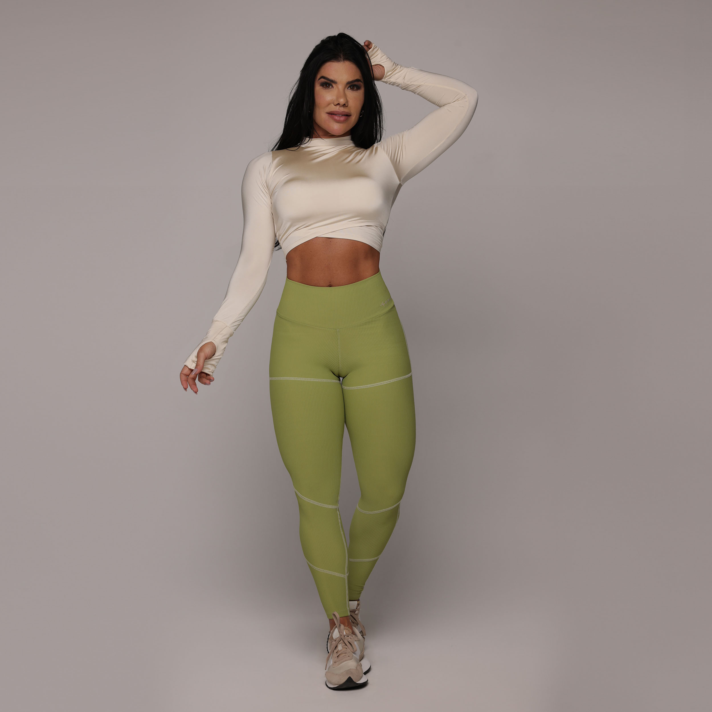 LEGGING PUMP EMPINA BUMBUM JACQUARD CANELADO VERDE OLIVA
