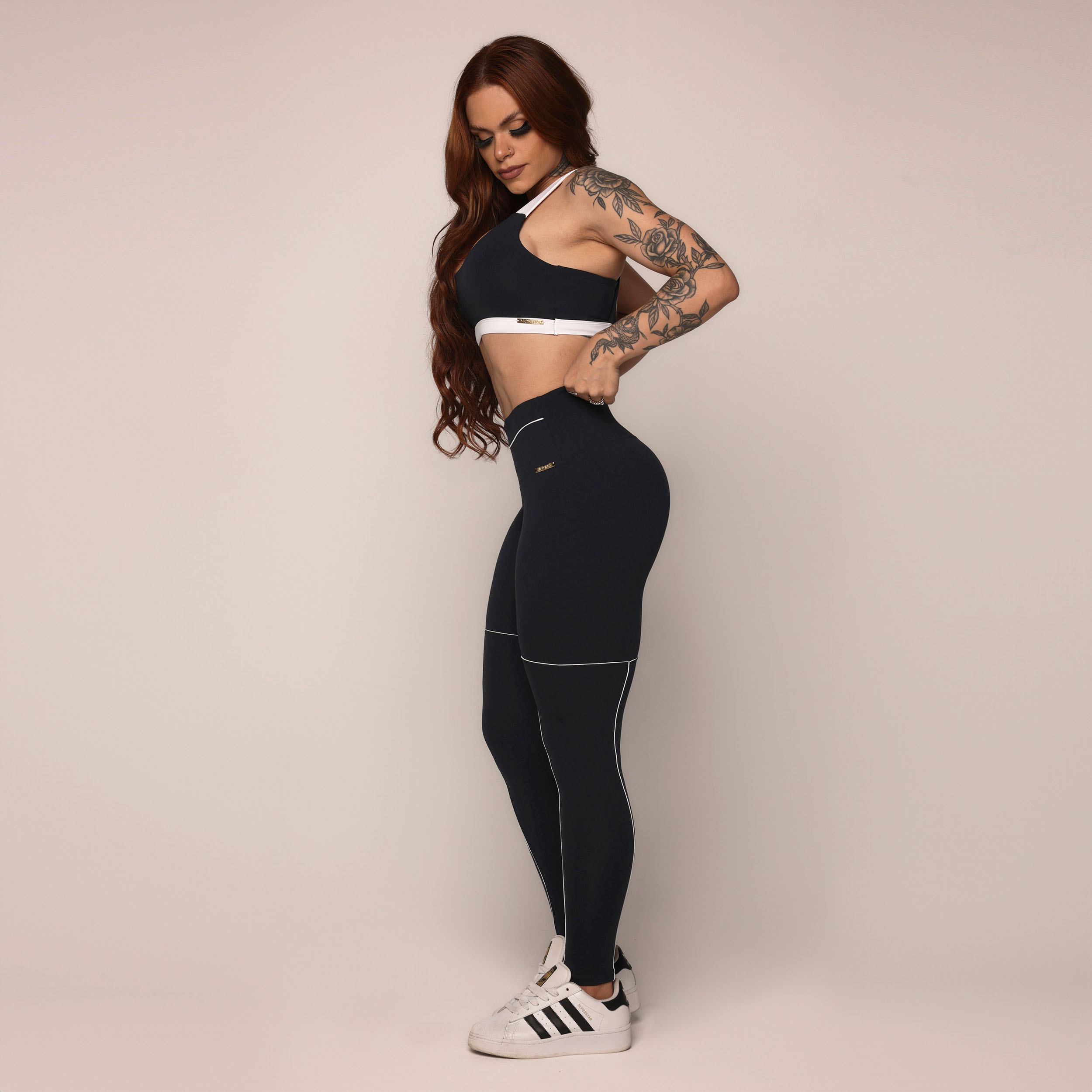 LEGGING VIBE PRETA COM BRANCO