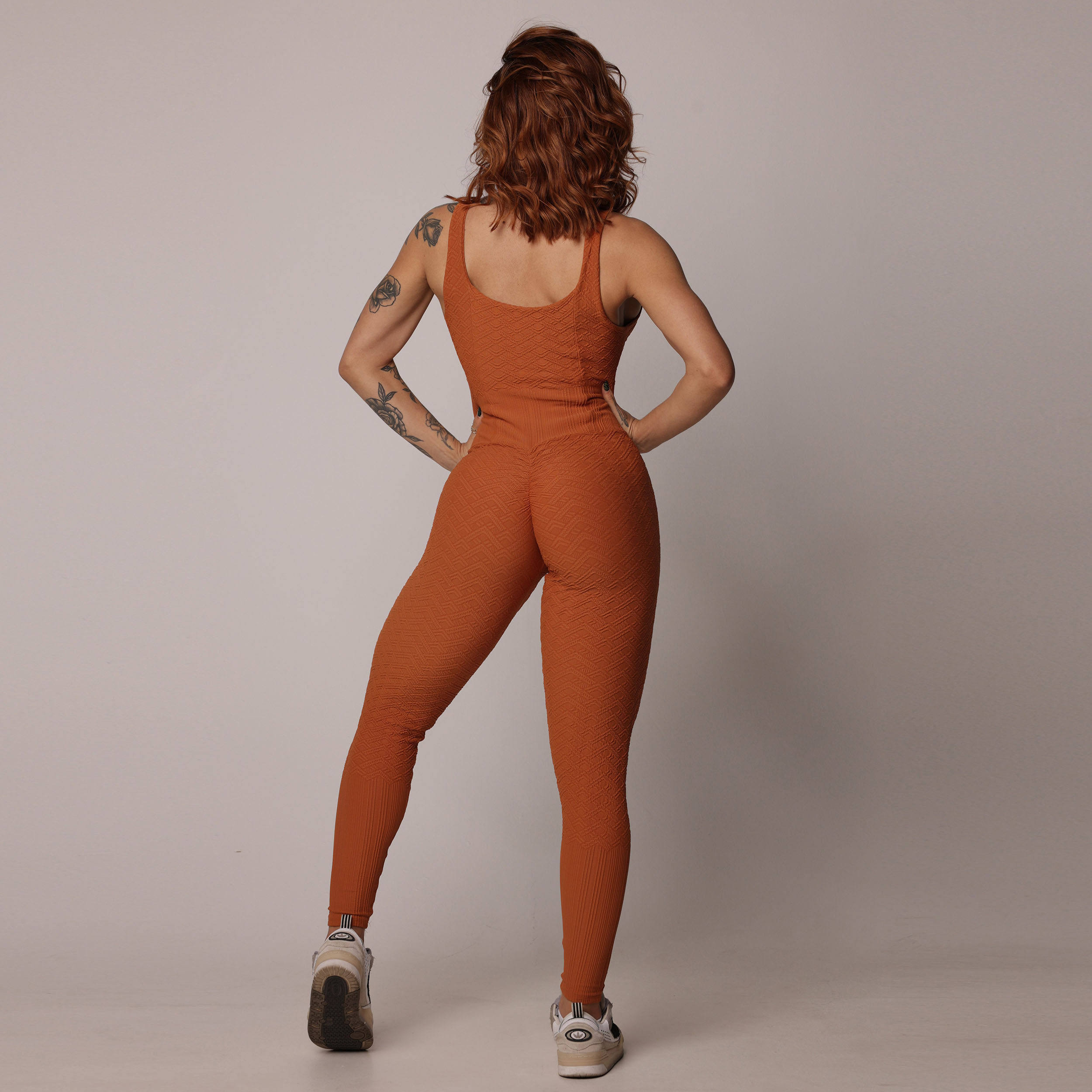 MACACÃO CONFORT EMPINA BUMBUM JACQUARD LUXOR TERRACOTA