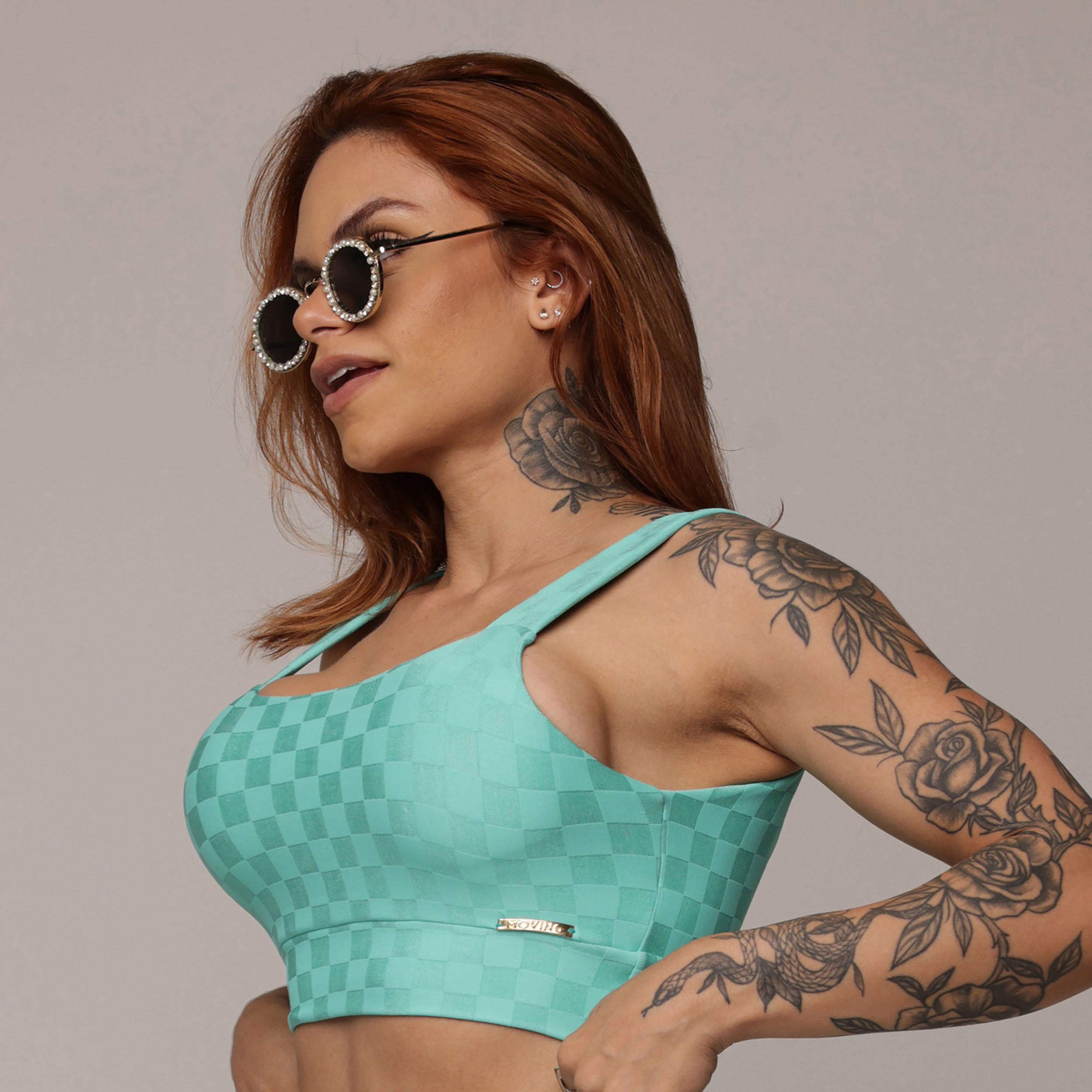 TOP FAIXA JACQUARD XEQUE-MATE TURQUESA