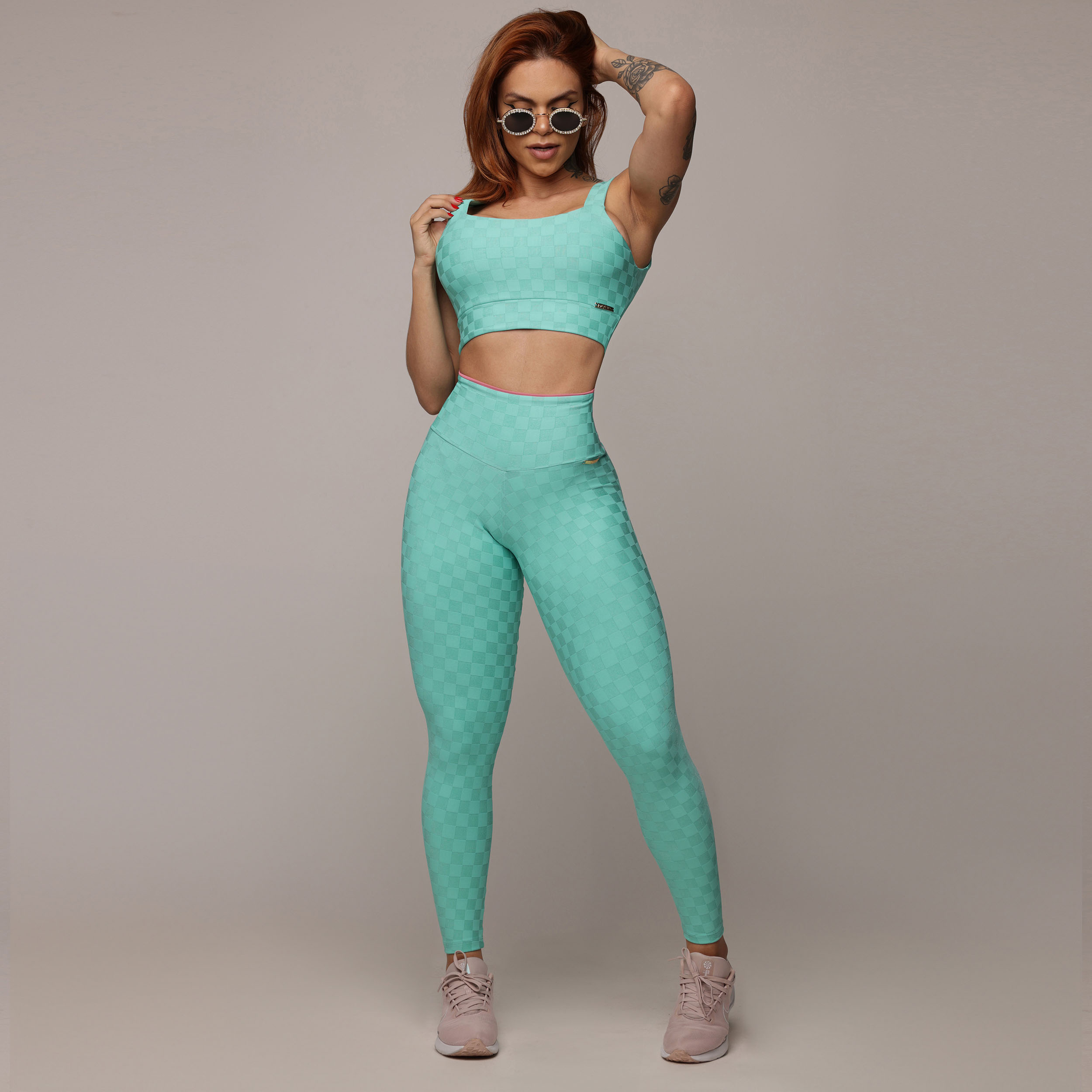 O clássico padrão xadrez, que remonta ao antigo Egito como um símbolo de disciplina e ousadia, renasce em um elegante tom verde água.