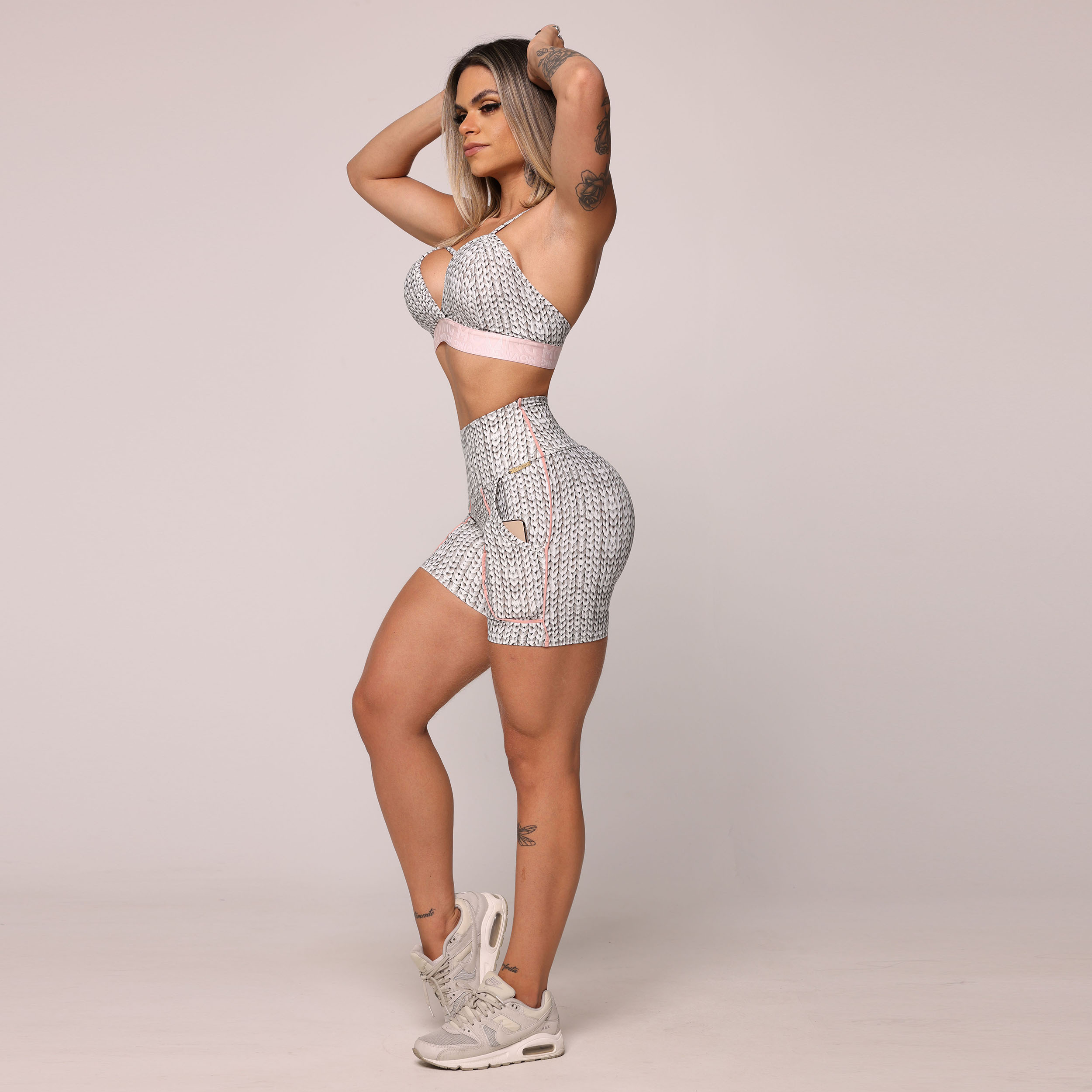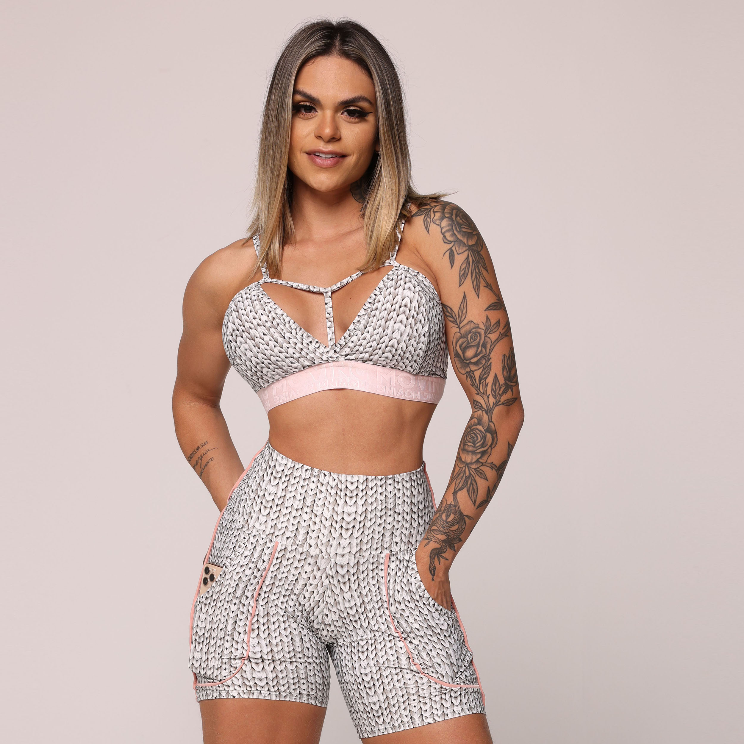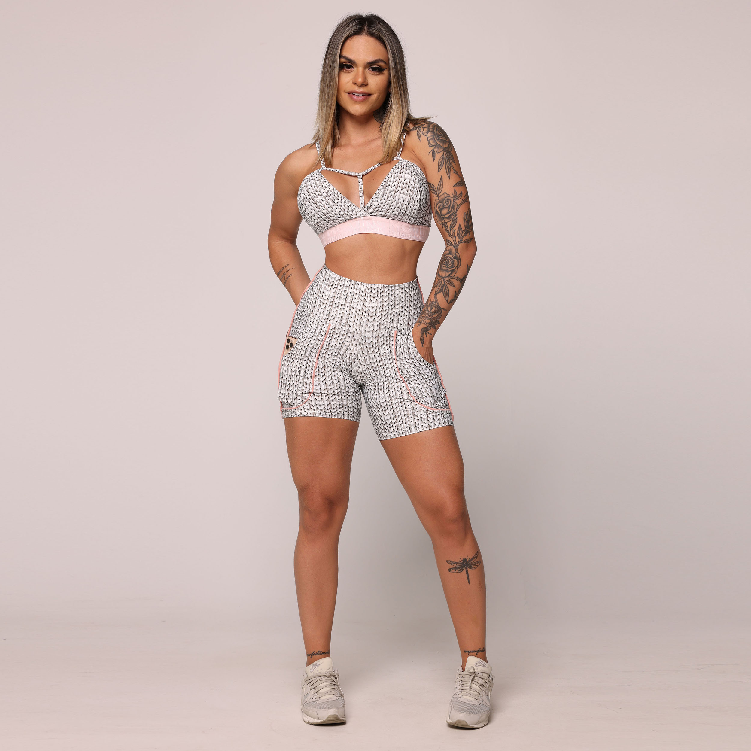 Utilizando tecidos de alta tecnologia, trazemos estampas realistas de tricot em 3D para o universo fitness. Sinta-se confortável e confiante enquanto veste a história do tricot de uma maneira completamente nova!