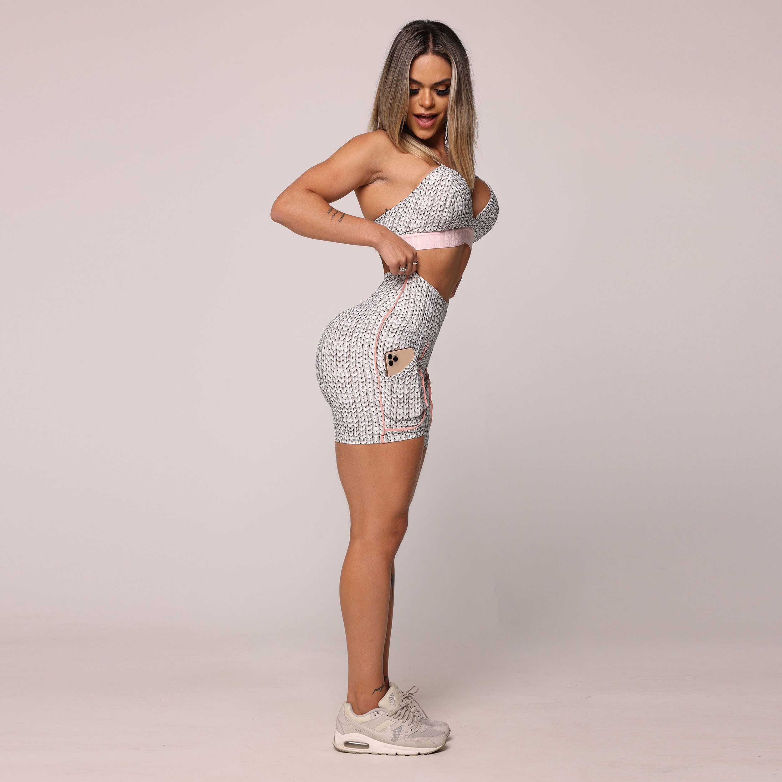 SHORT CELULAR EMPINA BUMBUM TRICOT WHITE EXCLUSIVO