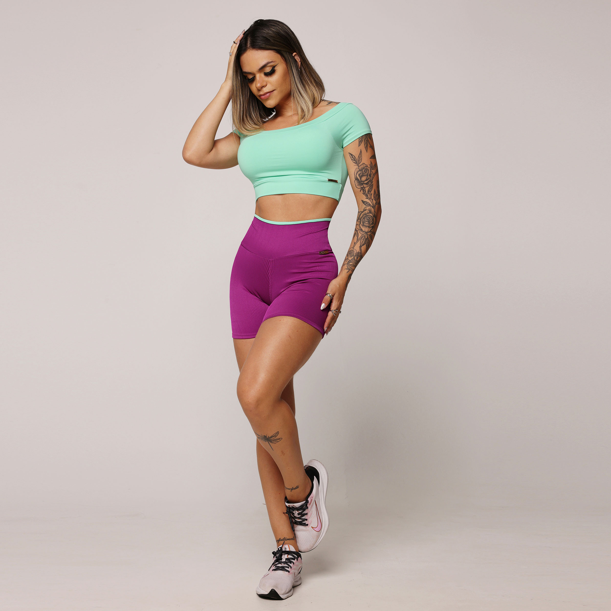 SHORT CÓS BICOLOR EMPINA BUMBUM JACQUARD 3D PURPLE