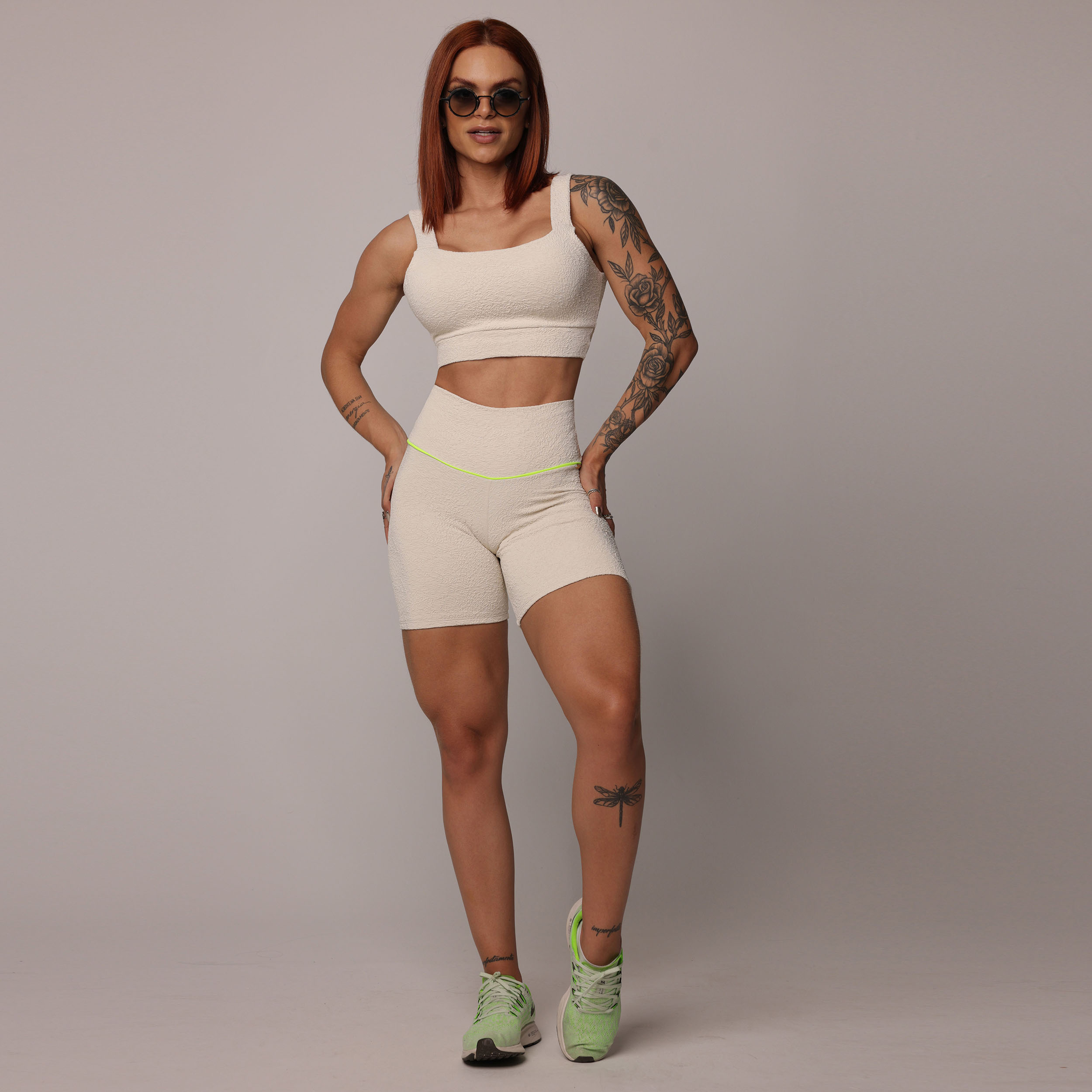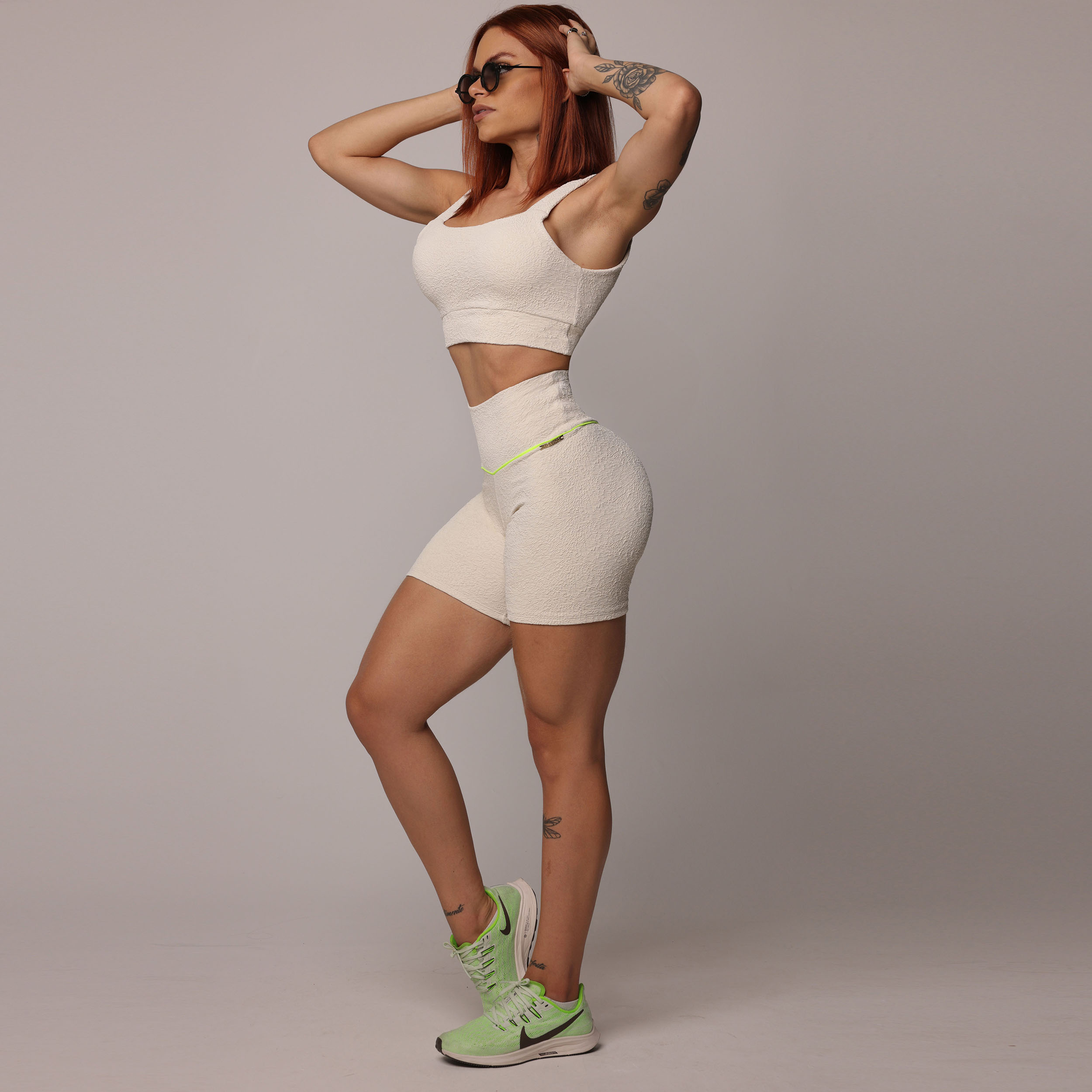 SHORT EMPINA BUMBUM JACQUARD FLUFFY CREAM