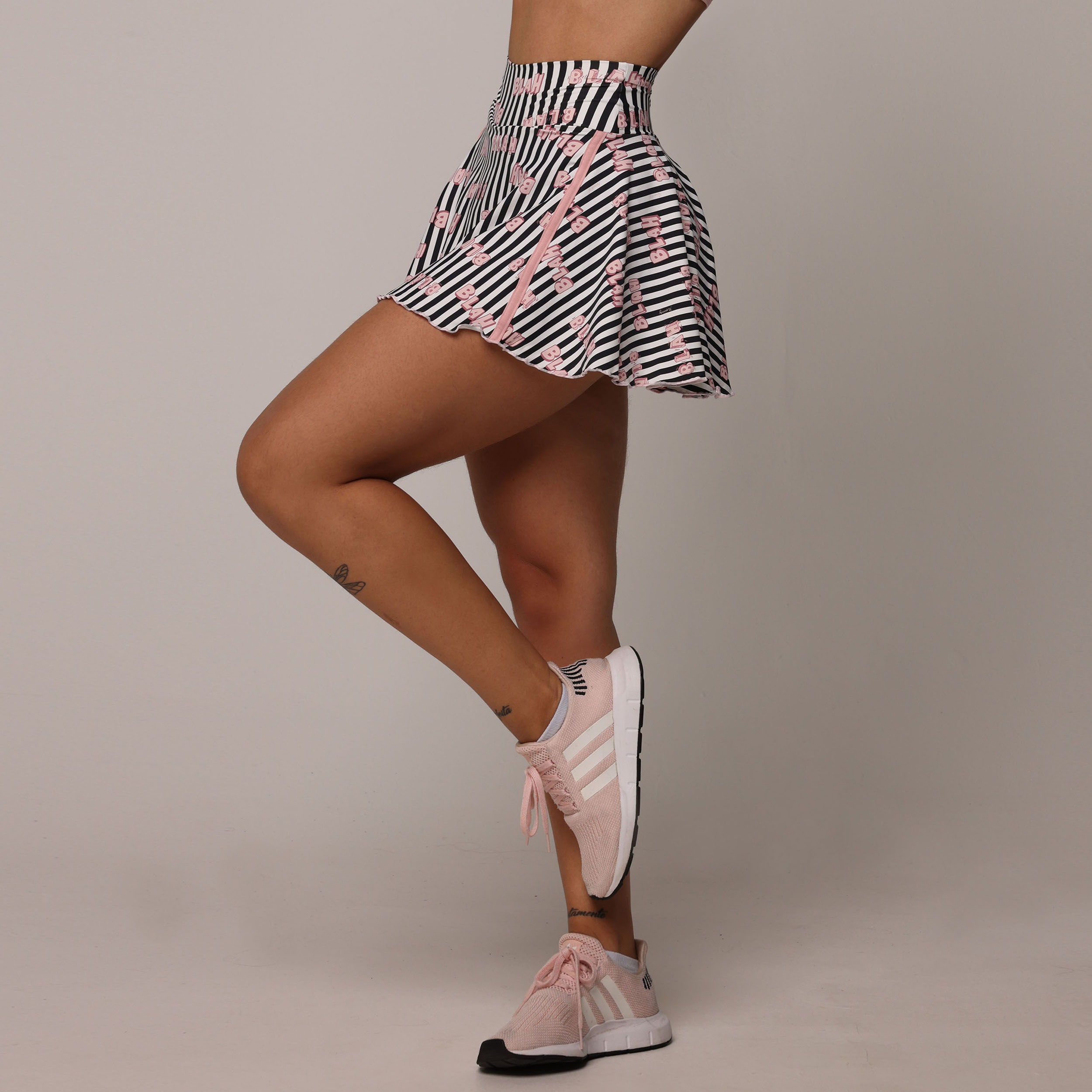 Lines Bla Bla Bla une as atemporais listras preta, branca e rosa aos dizeres que ecoam o bate-papo animado da mulherada.