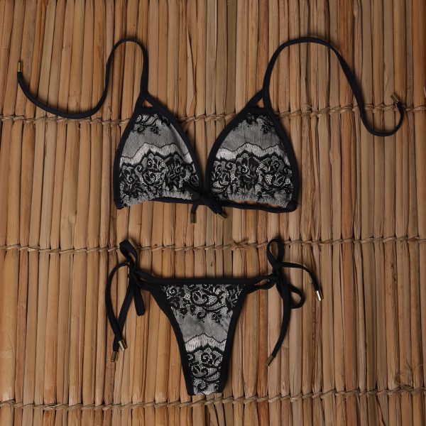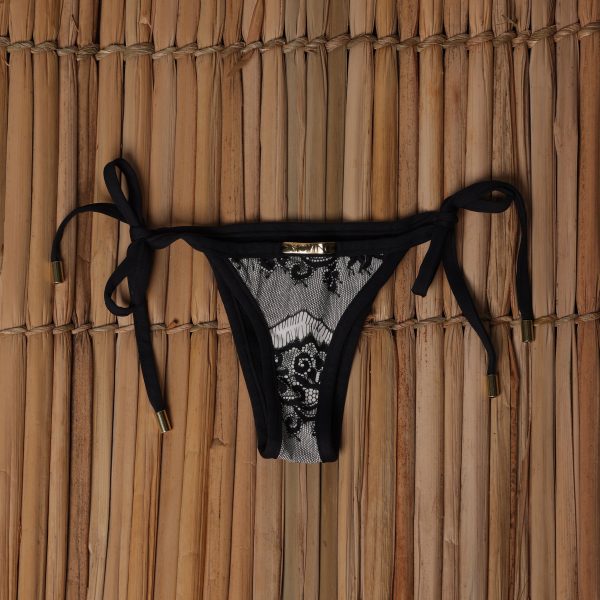 BIQUÍNI CORTININHA DE LAÇO RENDADO PRETO E BRANCO