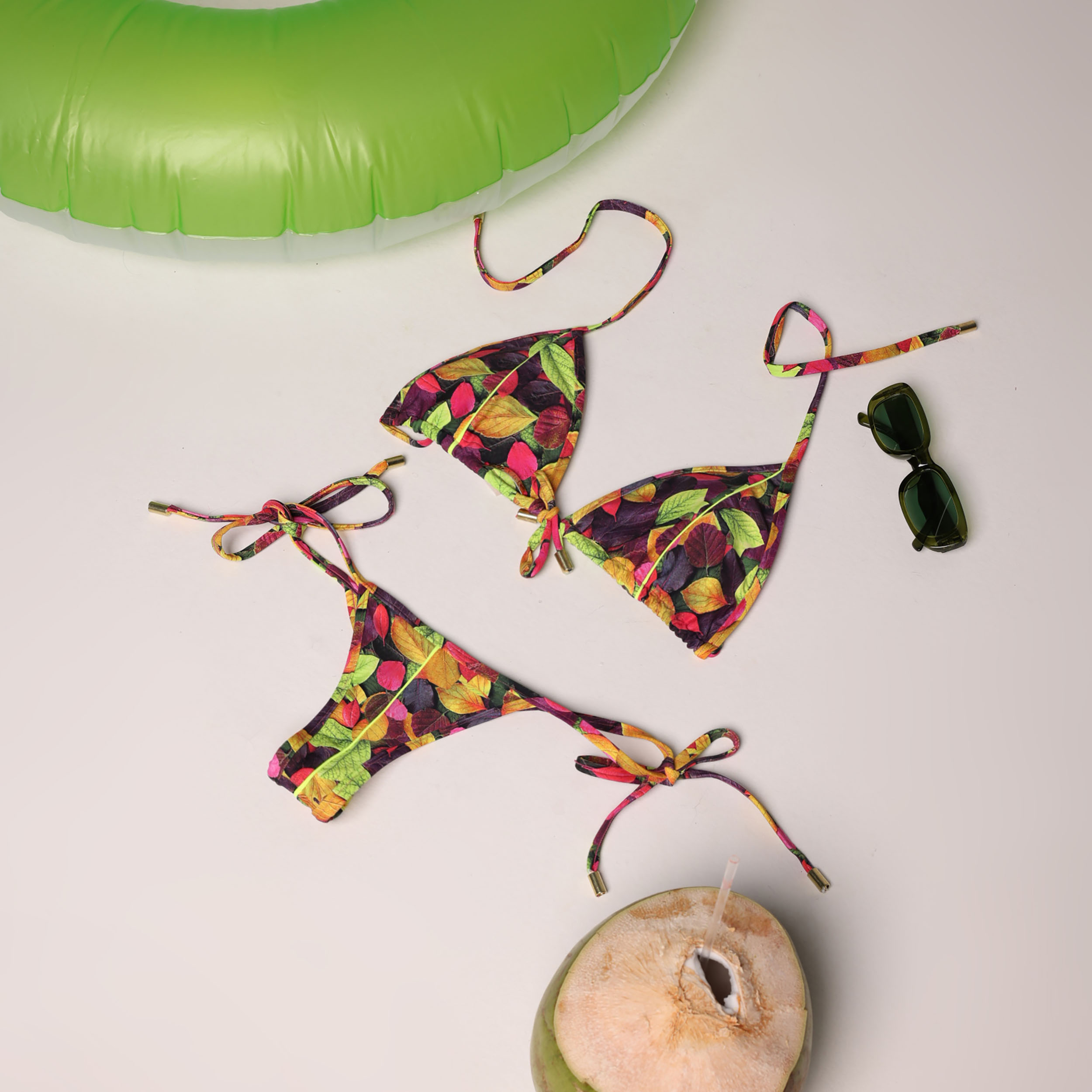 BIQUÍNI CORTININHA FOLHAS DE OUTONO COLORIDAS