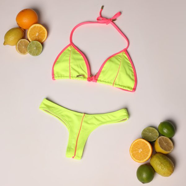 BIQUÍNI CORTININHA AMARELO NEON COM ROSA FLÚOR