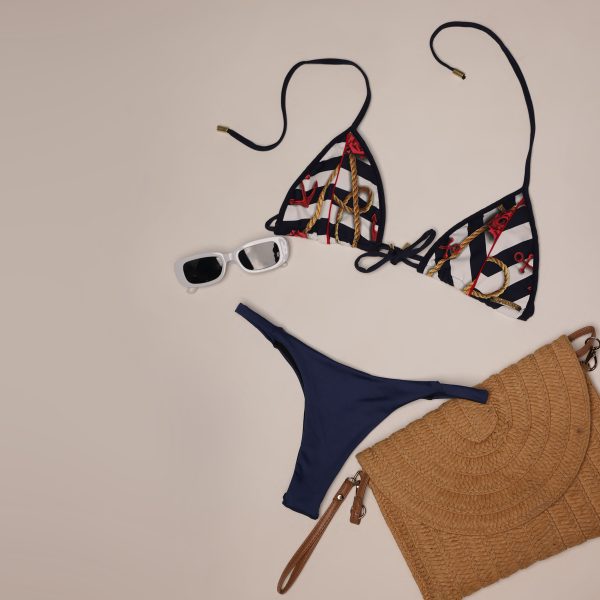 BIQUÍNI CORTININHA NÁUTICO COM CALCINHA AZUL MARINHO