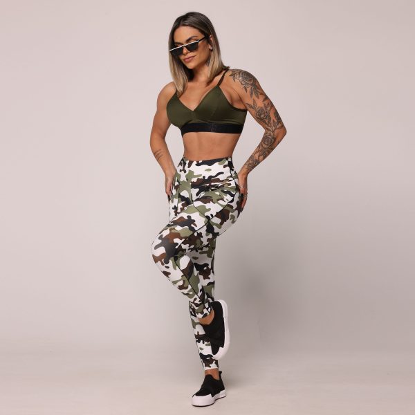 Coleção camuflagem!A Legging Hit une funcionalidade e estilo de forma única. O elástico na cintura proporciona um ajuste firme e seguro. O detalhe cruzado no elástico cria um efeito em V, que alonga a cintura e adiciona um toque de elegância.
