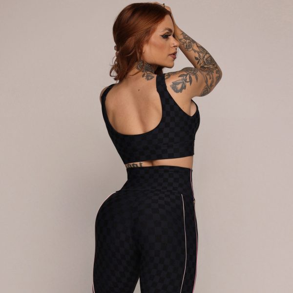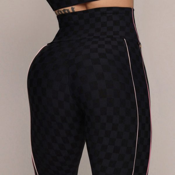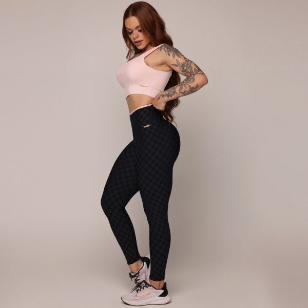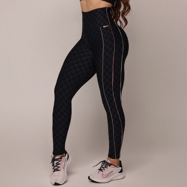 LEGGING BICOLOR EMPINA BUMBUM JACQUARD XEQUE-MATE PRETO