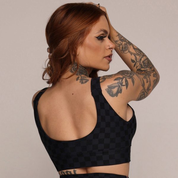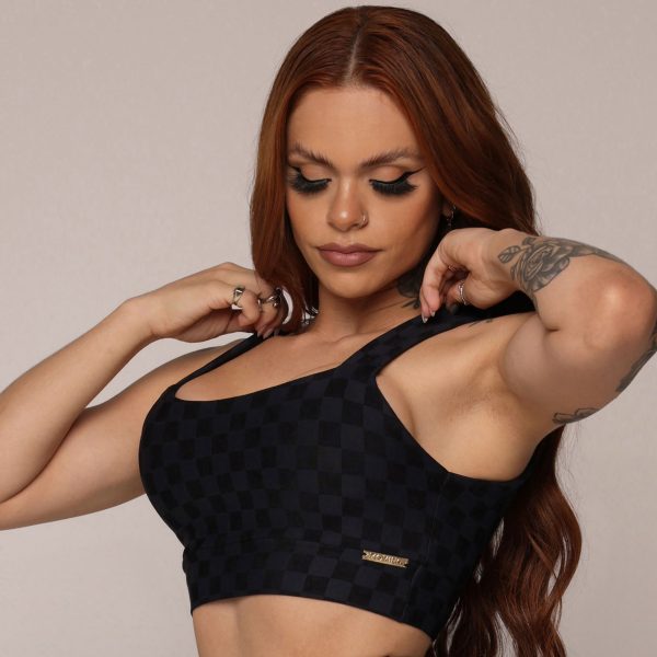 TOP FAIXA JACQUARD XEQUE-MATE PRETO