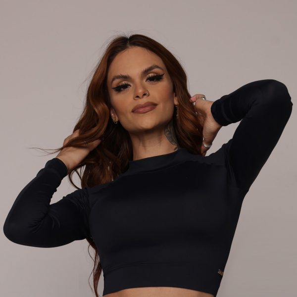 CROPPED CARMEL MANGA LONGA PRETO