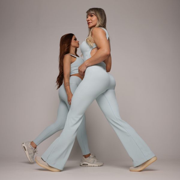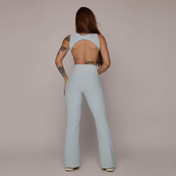 MACACÃO CHIPRE FLARE JACQUARD CANELADO AZUL SERENITY