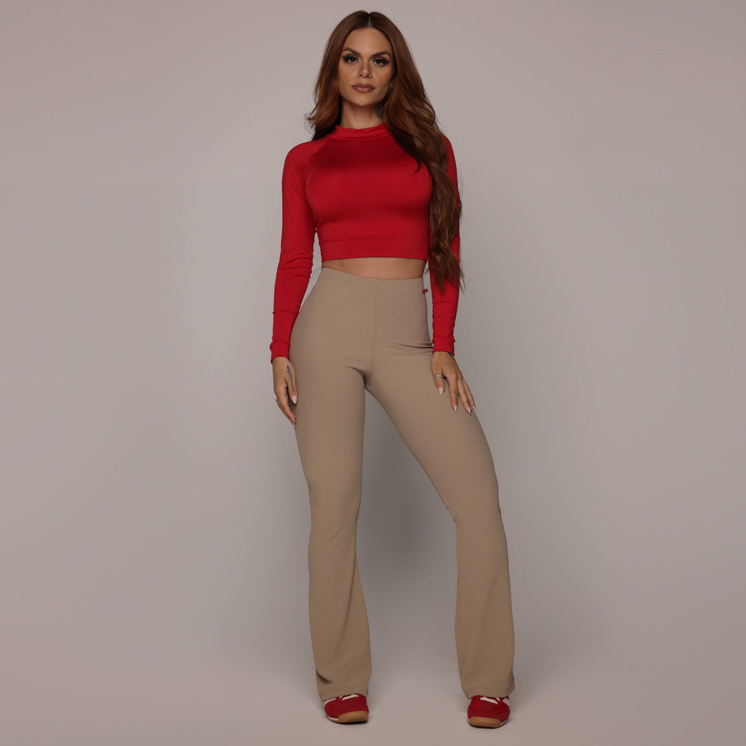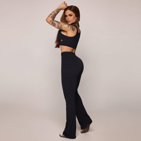 A Calça Flare é uma verdadeira jóia do design. Ideal para mulheres que desejam equilibrar suas proporções, suaviza quadris e ombros, criando um contorno harmonioso. Com a capacidade de alongar a silhueta, confere uma ilusão de altura e elegância. Cada detalhe foi pensado para modelar o corpo de forma sofisticada, fazendo você se sentir mais alta e confiante.