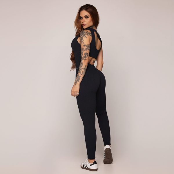 MACACÃO GOTA EMPINA BUMBUM JACQUARD SAVOIR PRETO