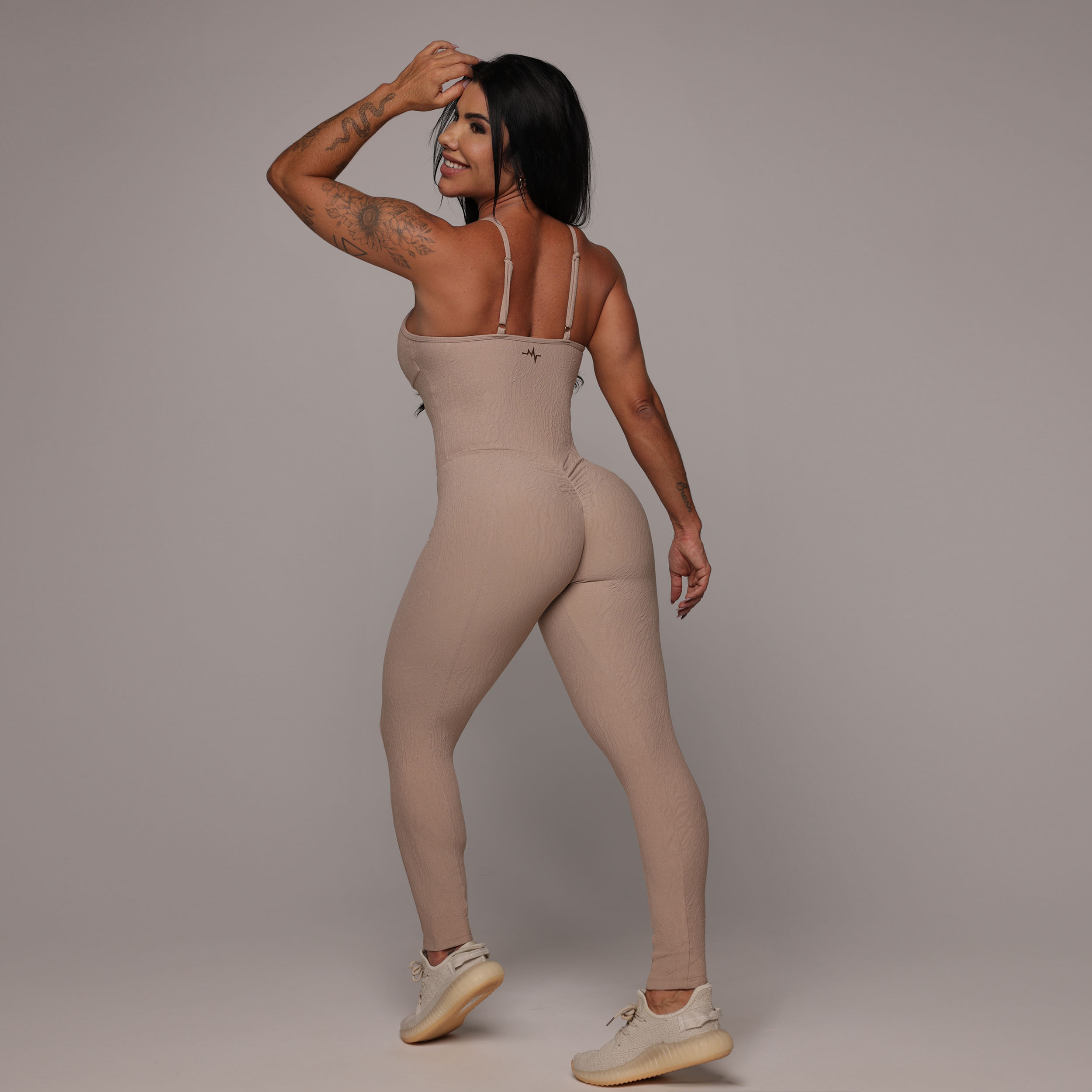 MACACÃO QUEENS EMPINA BUMBUM JACQUARD DUNAS NUDE