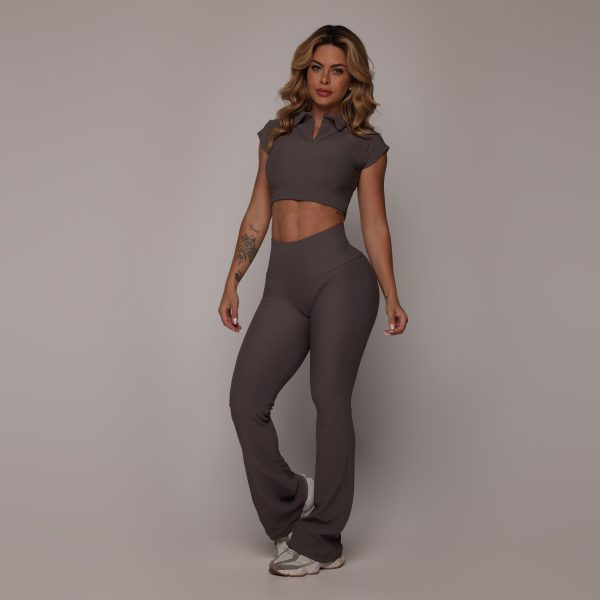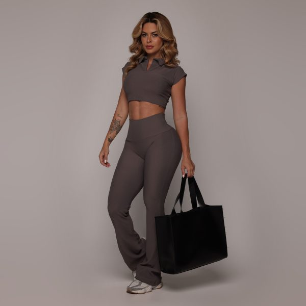 CALÇA FLARE JACQUARD CANELADO CHUMBO