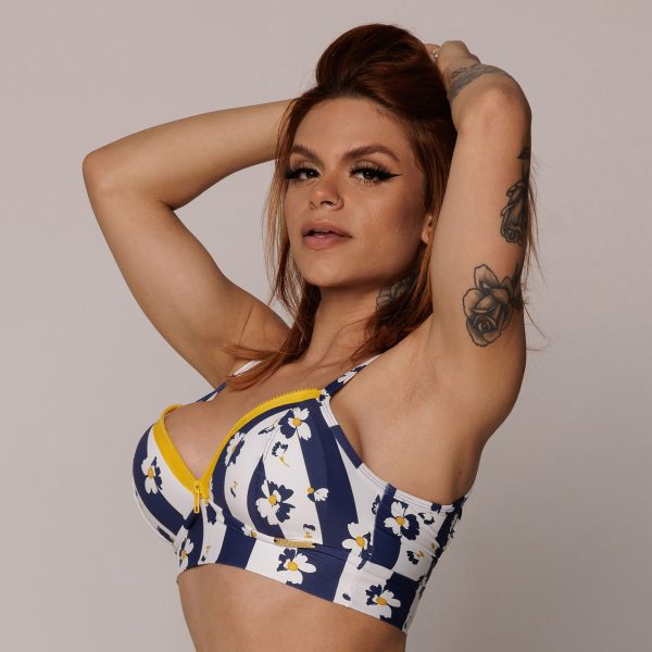 Para bustos definidos e um look diferente, o Top Hype é o ideal. O detalhe decorativo em zíper na frente oferece versatilidade, enquanto as tiras nas costas trazem um toque extra de modernidade.