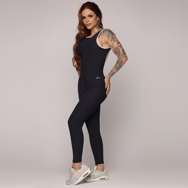 MACACÃO LOTUS EMPINA BUMBUM JACQUARD CANELADO PRETO
