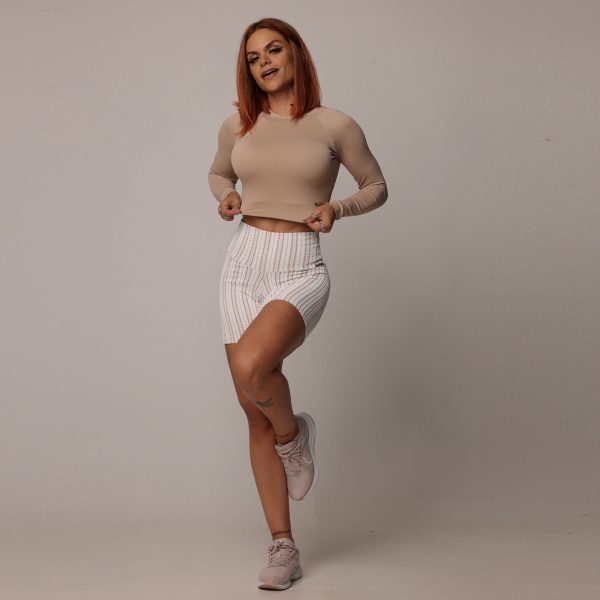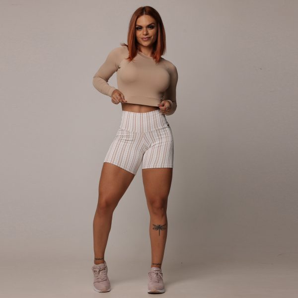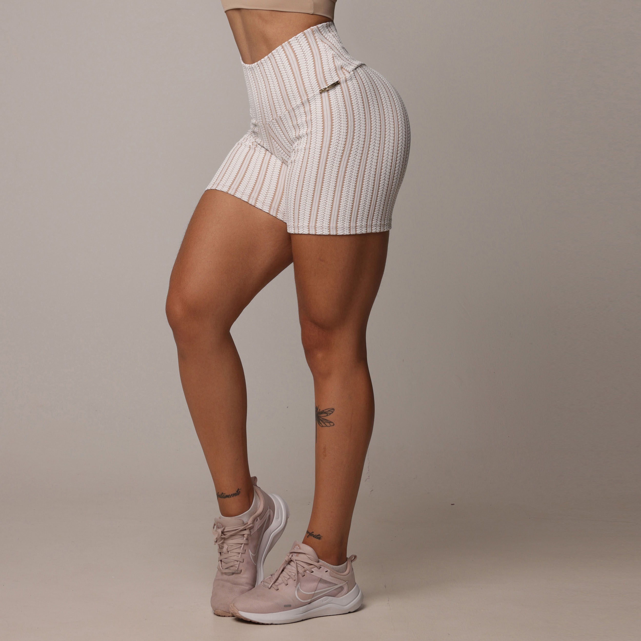 SHORT EMPINA BUMBUM JACQUARD CROCHET CAPPUCCINO